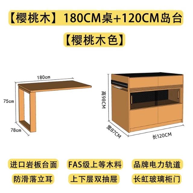 新品 實木岩板島台餐桌一體廚房日式櫻桃木伸縮中島台收納餐邊櫃儲物櫃