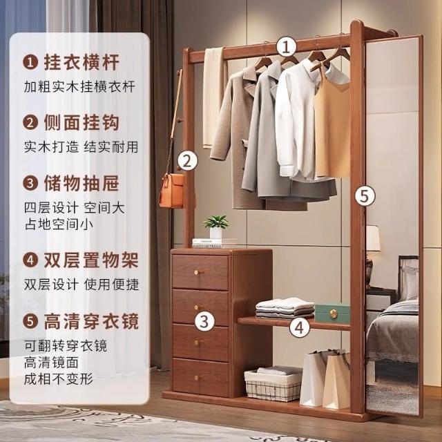 工廠直髮 實木衣帽架試衣鏡全身鏡掛衣架帶鏡子現代臥室客廳置物架子穿衣鏡