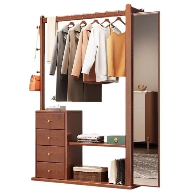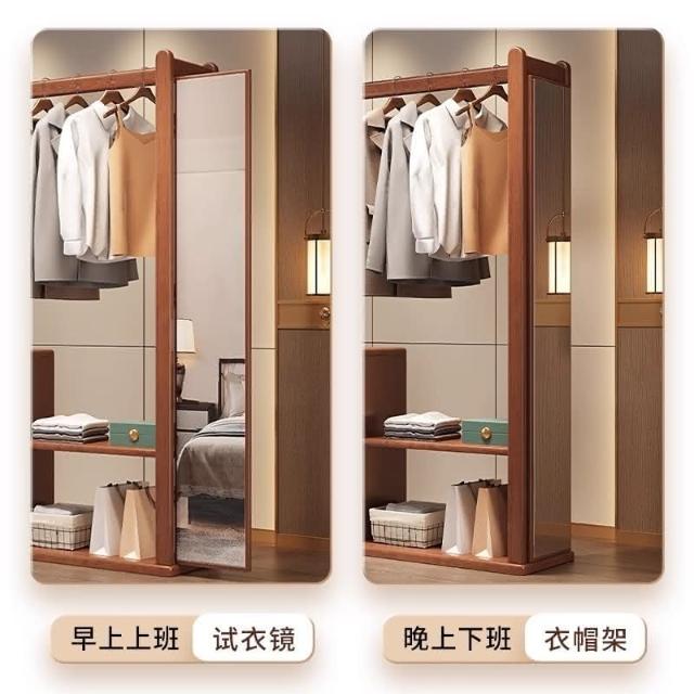 工廠直髮 實木衣帽架試衣鏡全身鏡掛衣架帶鏡子現代臥室客廳置物架子穿衣鏡