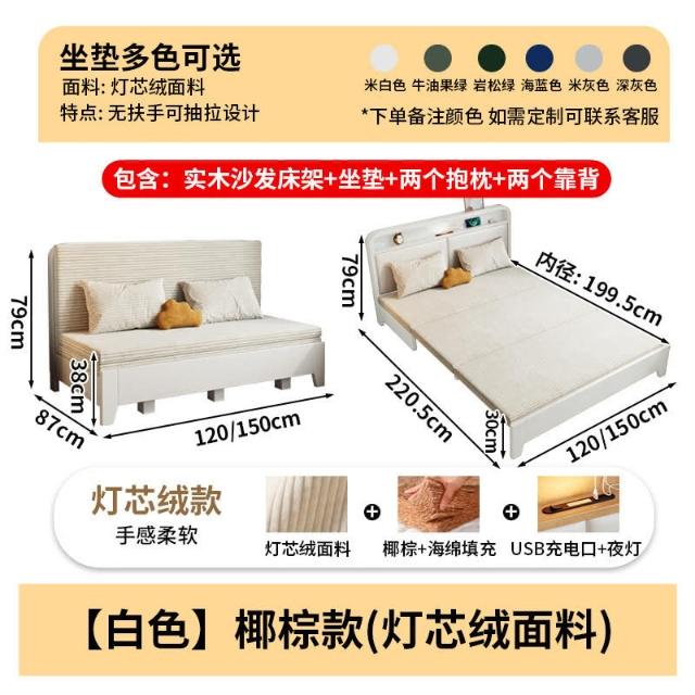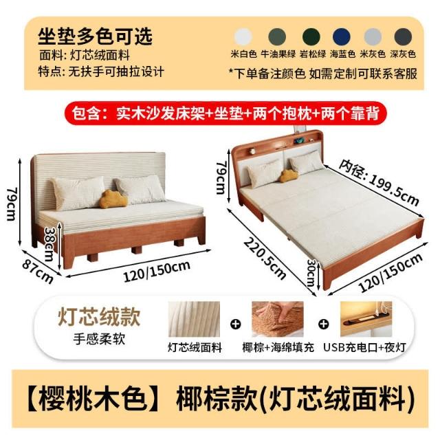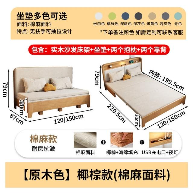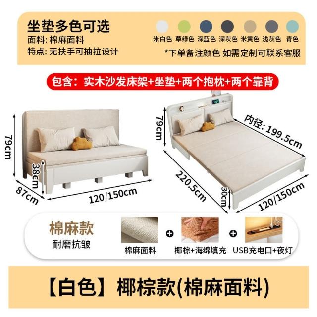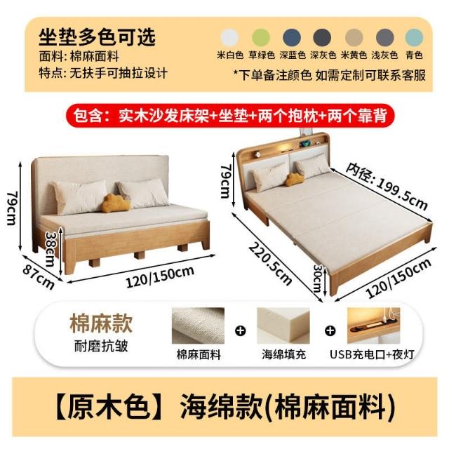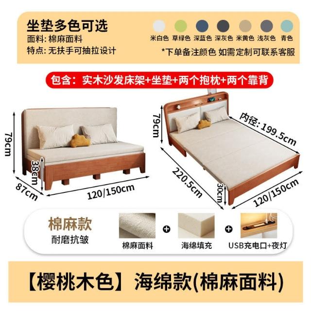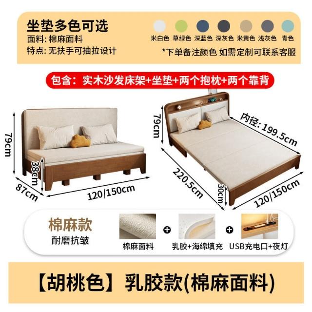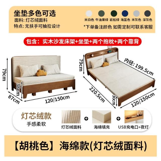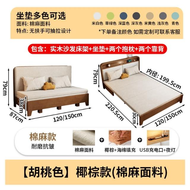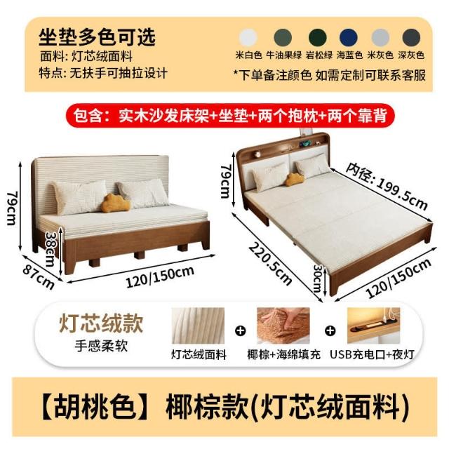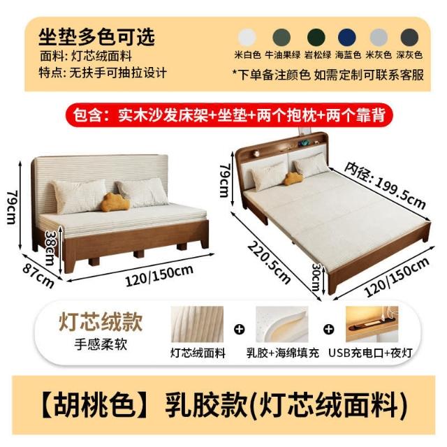 可開發票 可折疊實木沙髮床兩用小戶型書房用網紅款家用伸縮床無扶手抽拉床
