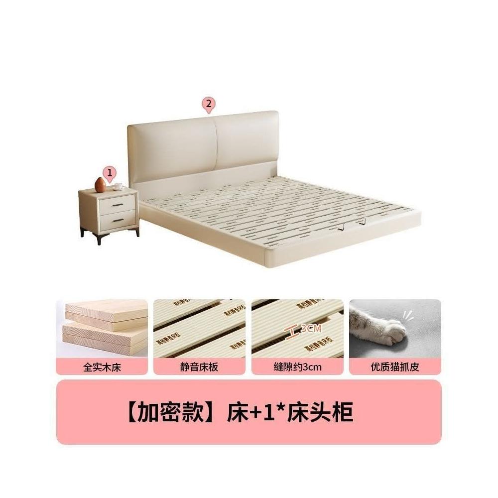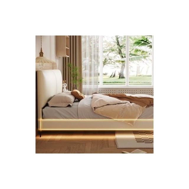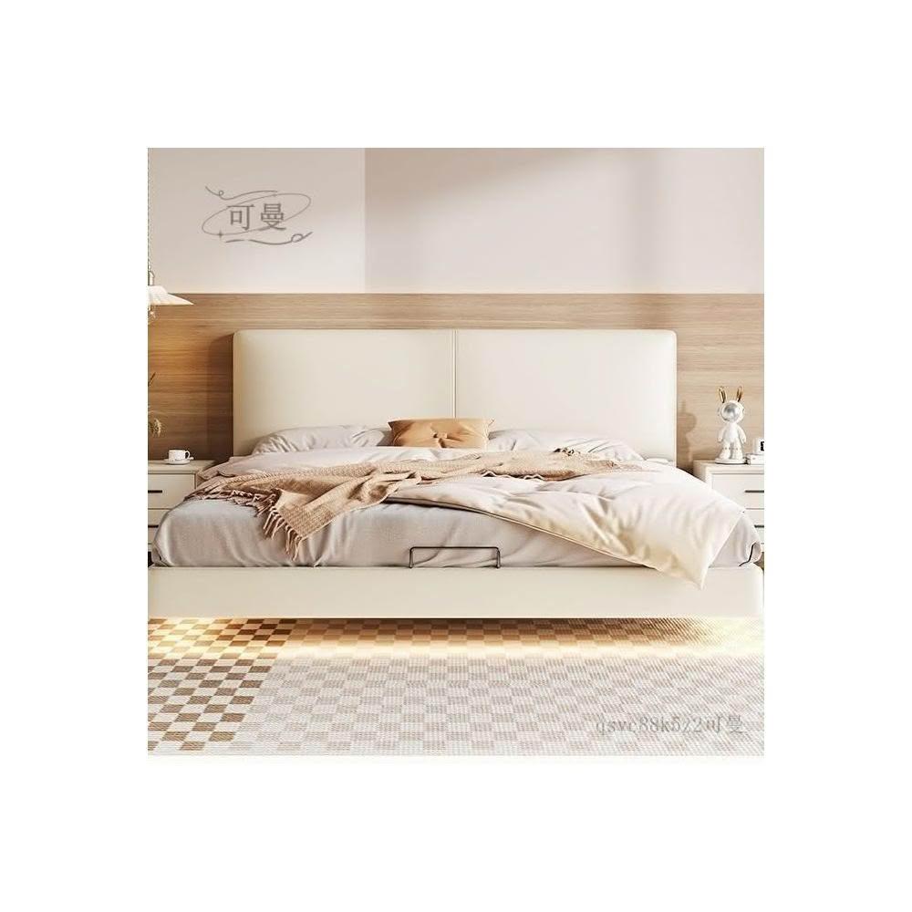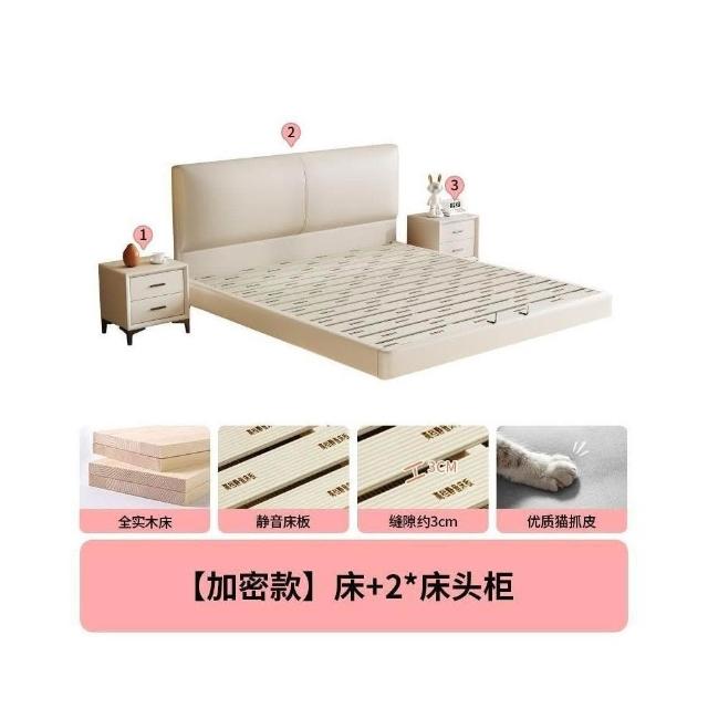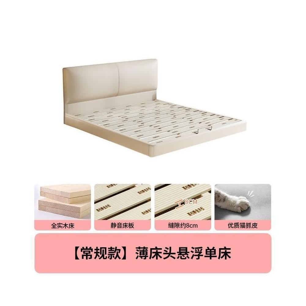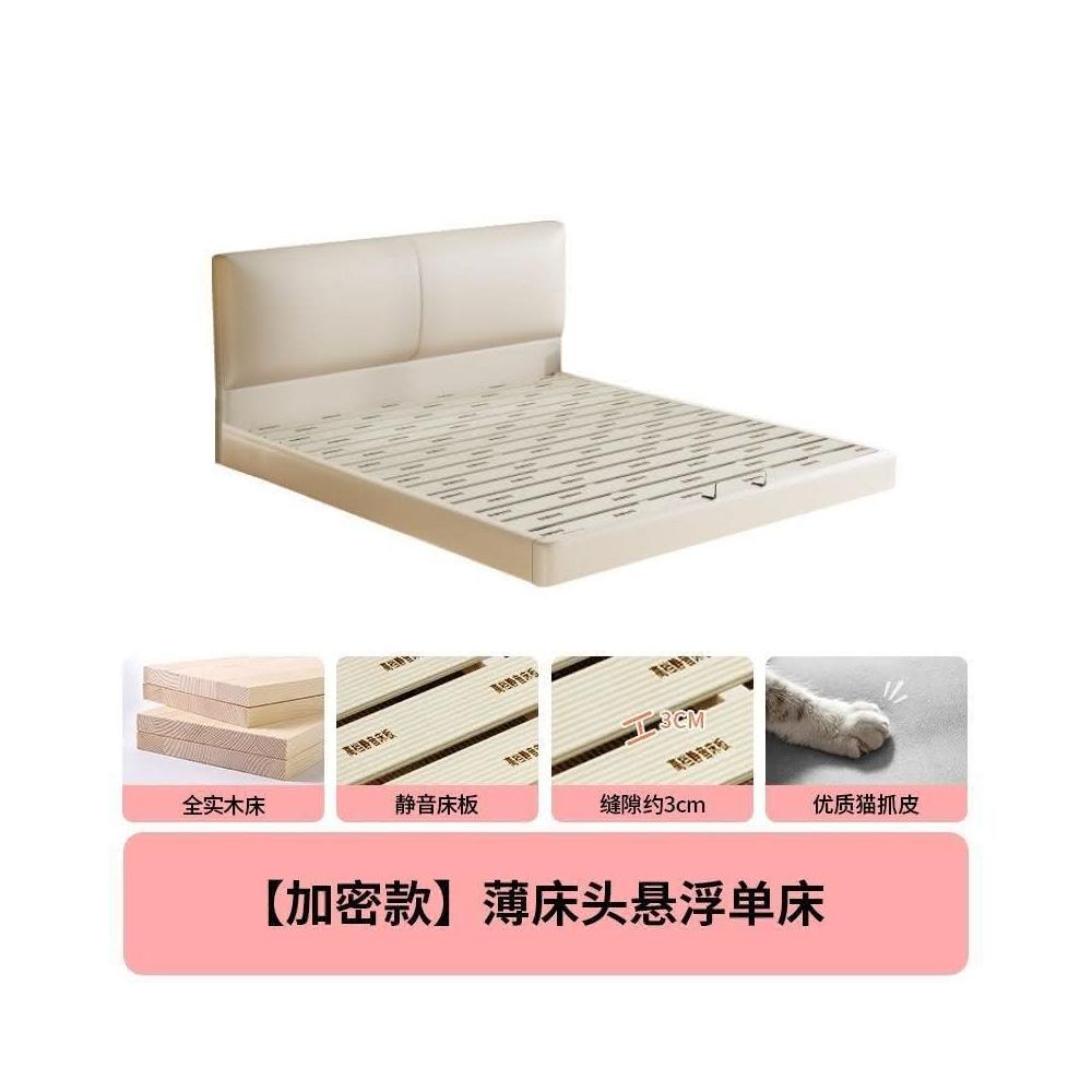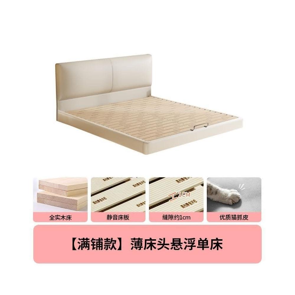 懸浮床現代簡約主臥貓抓皮全實木床 意式極簡薄床頭齊邊主臥雙人床
