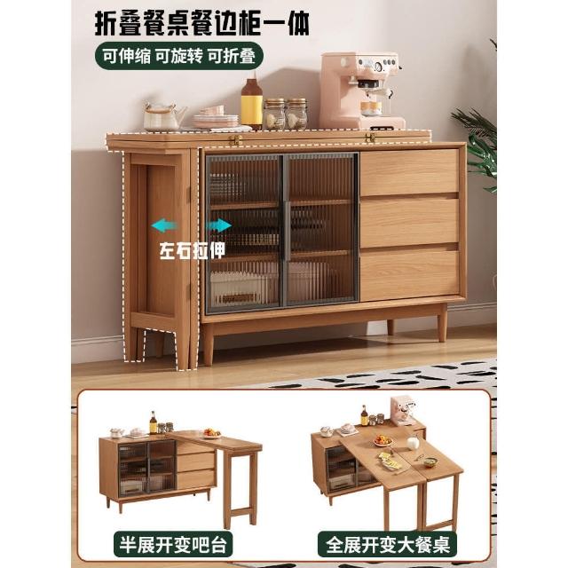 開發票 可上門安裝 折疊餐桌餐邊櫃靠墻一體小戶型傢用客廳實木可旋轉伸縮吧臺島臺桌