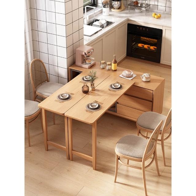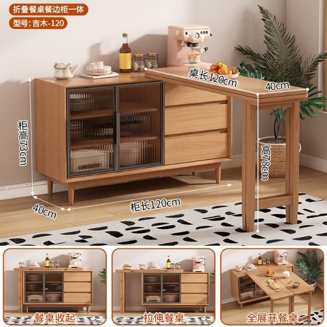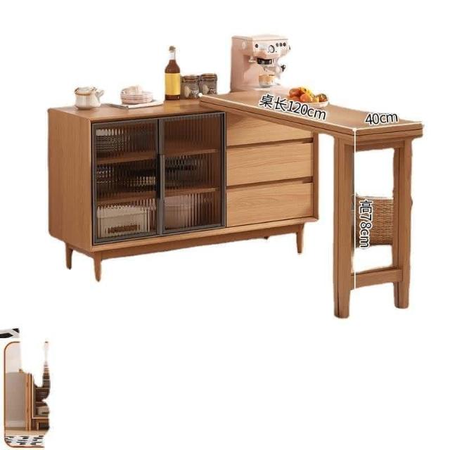 開發票 可上門安裝 折疊餐桌餐邊櫃靠墻一體小戶型傢用客廳實木可旋轉伸縮吧臺島臺桌