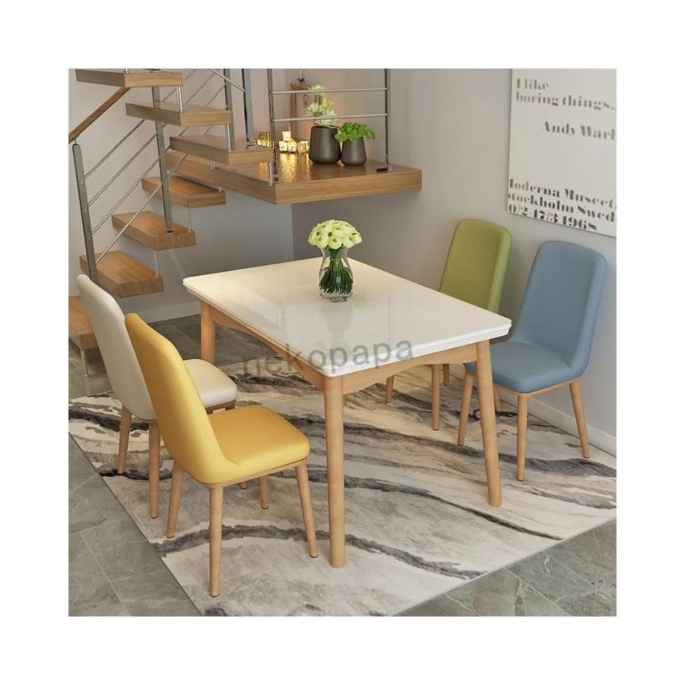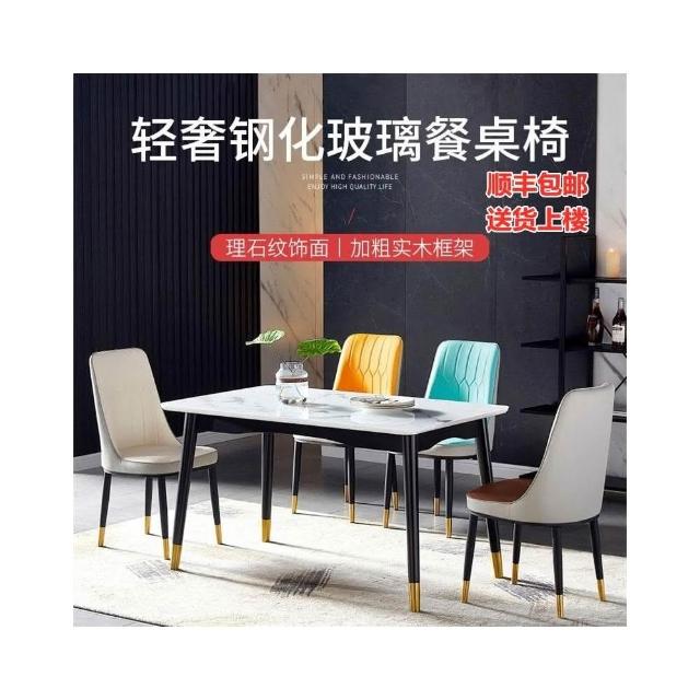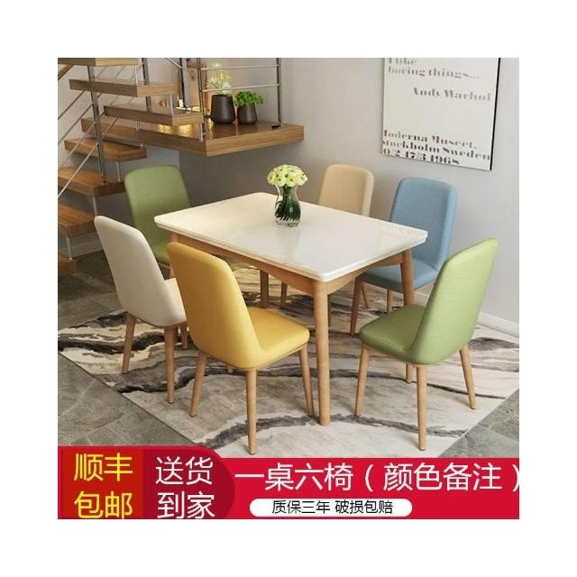 鋼化玻璃餐桌 北歐輕奢 餐桌 餐椅 折疊餐桌 北歐實木餐桌椅組閤