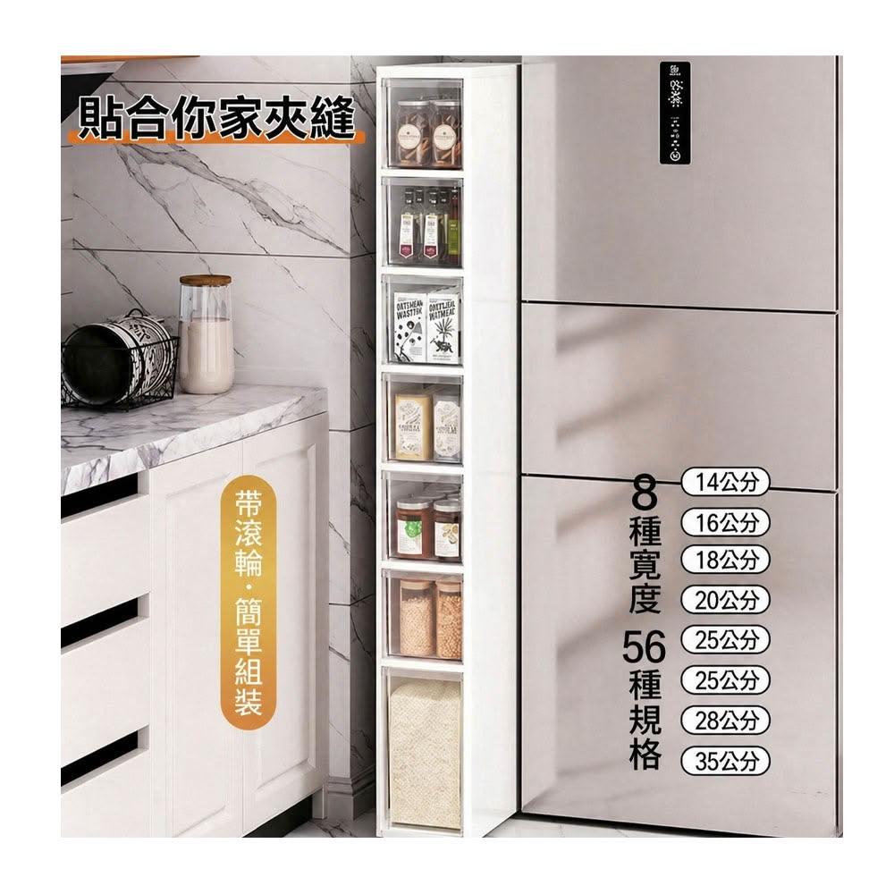 縫隙收納櫃 超窄14-20cm 廚房浴室置物架 滑輪抽拉式收納