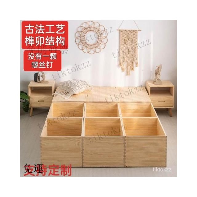 實木 拚接床箱 收納箱 多功能 榻榻米 箱子 加寬 拚接床 定製 陽臺 儲物