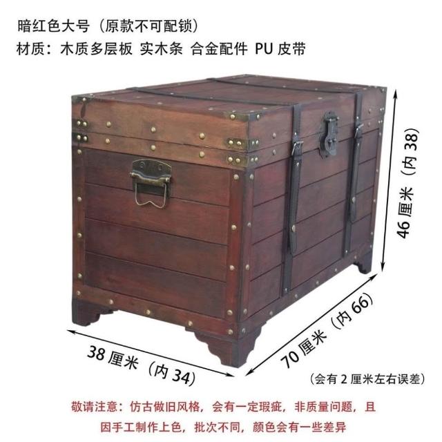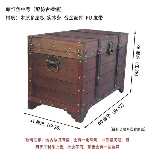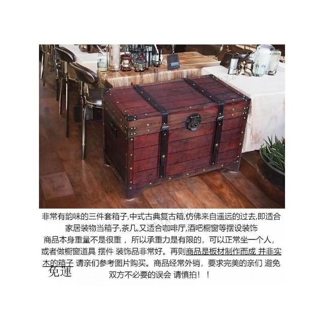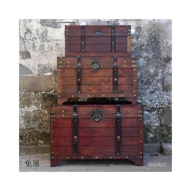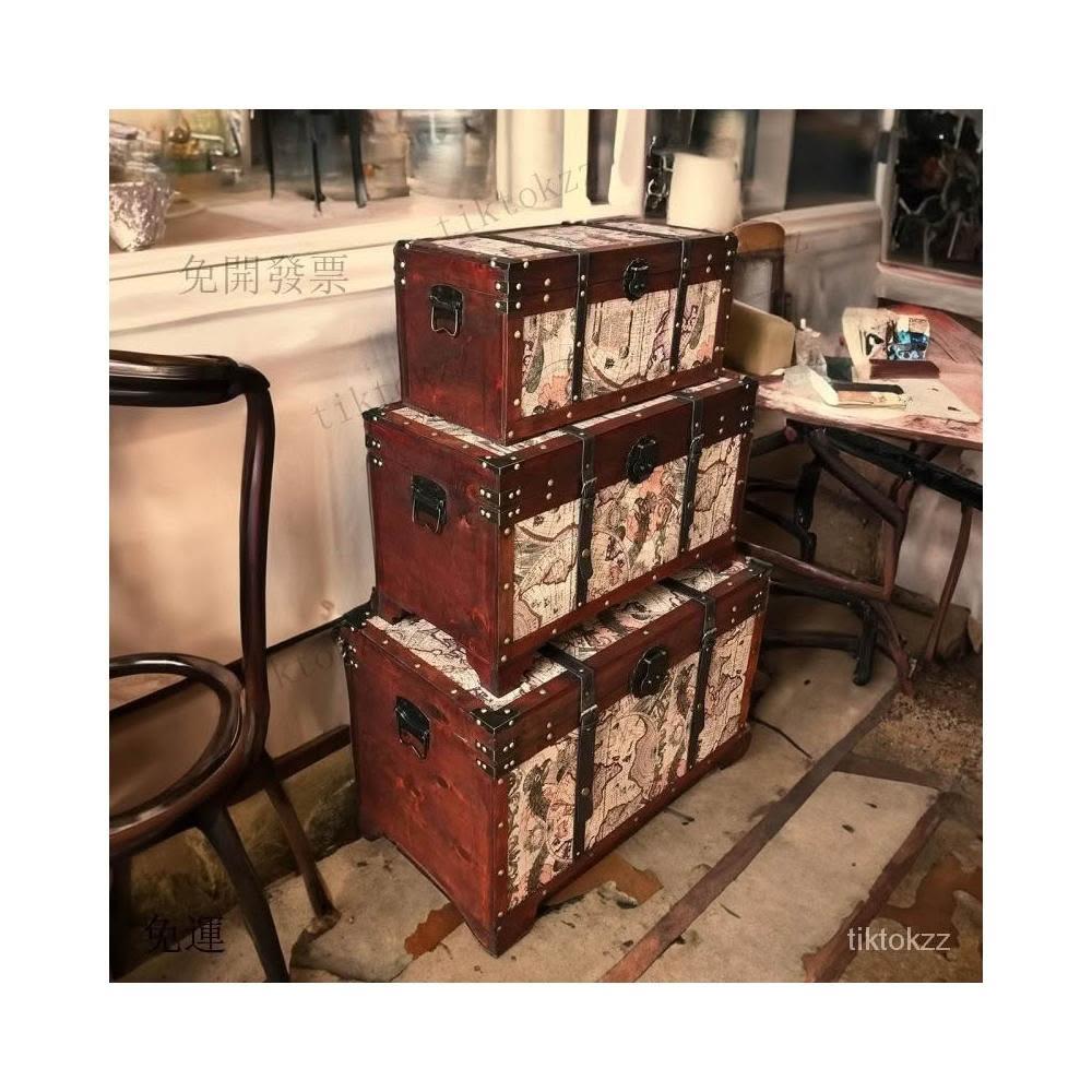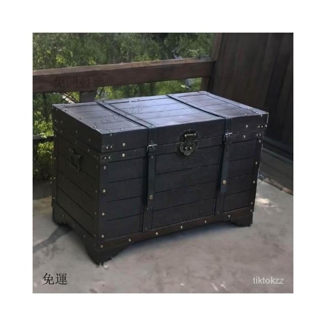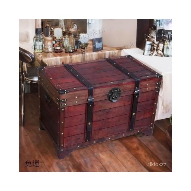 大容量複古箱子創意木箱茶幾帶鎖儲物收納箱戶外裝飾仿古做舊風格