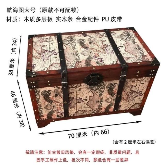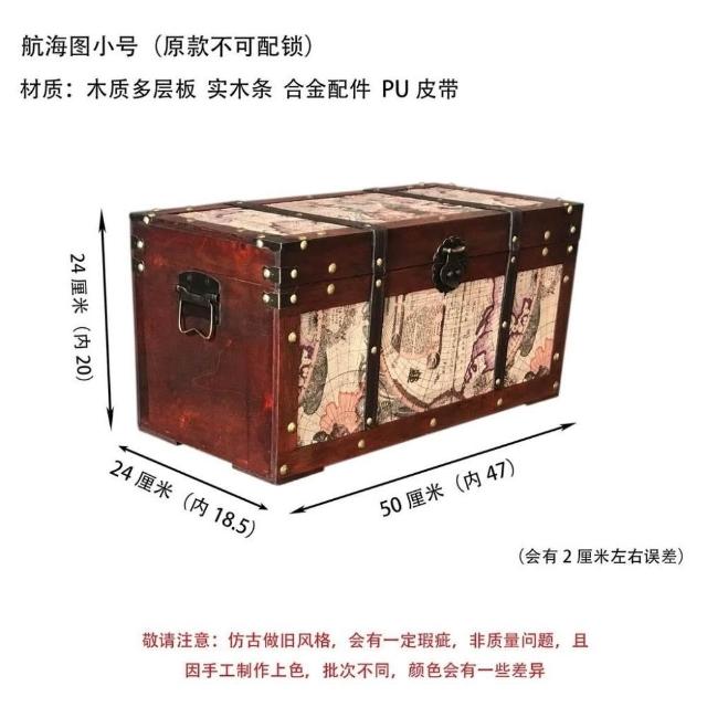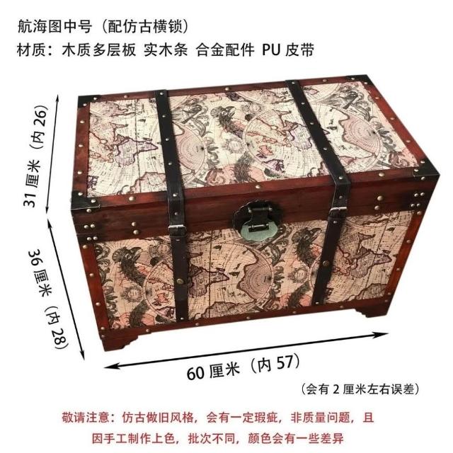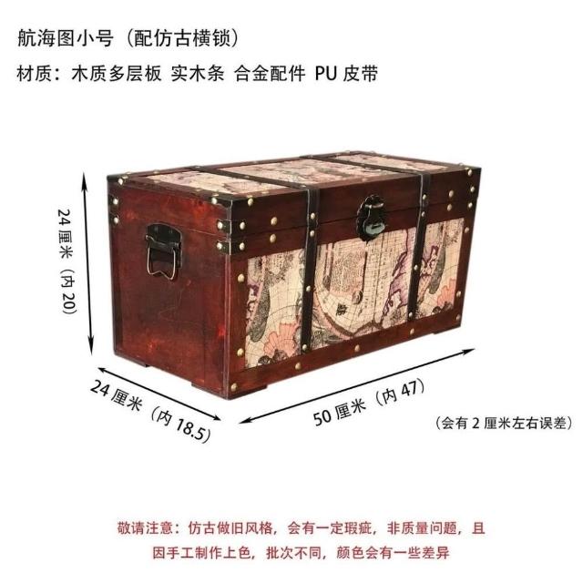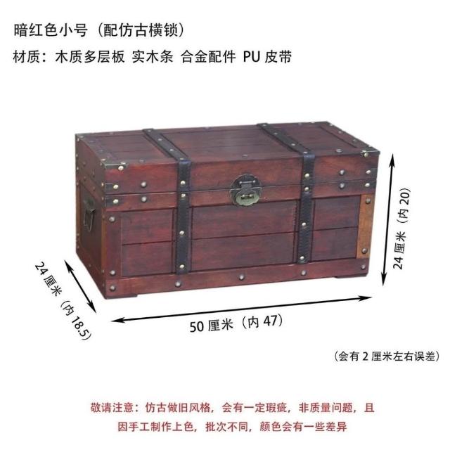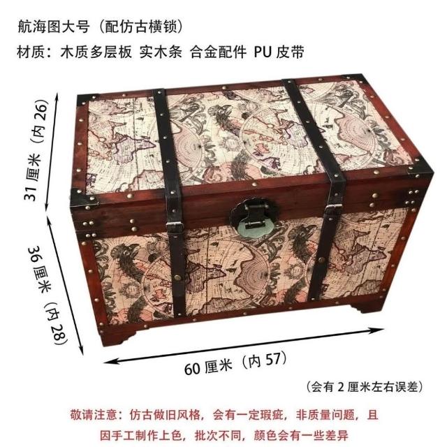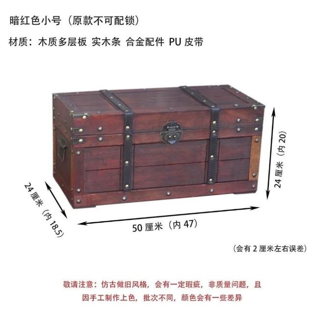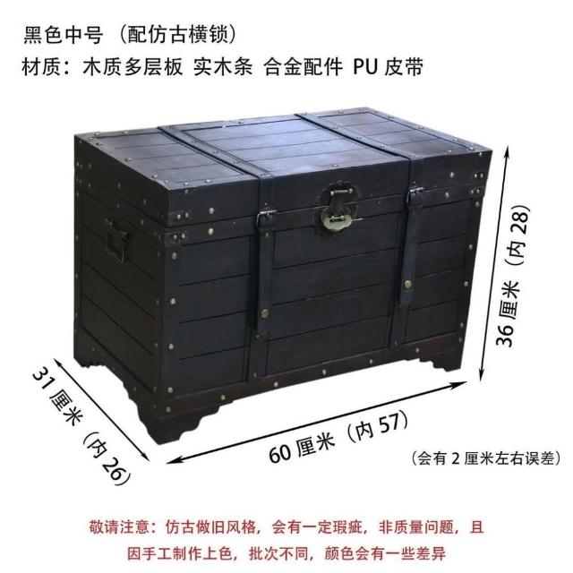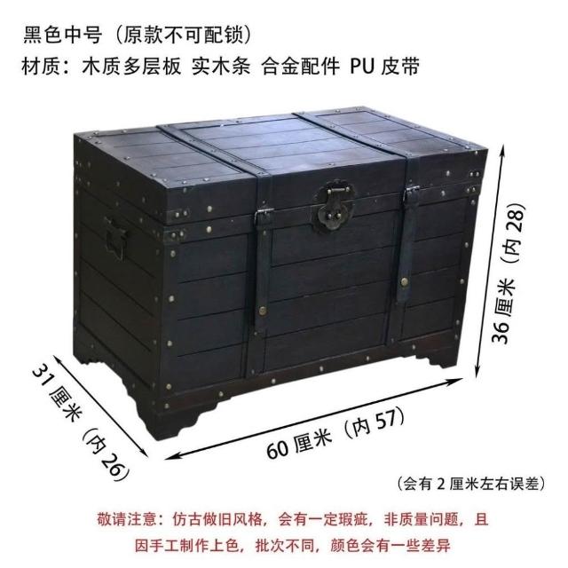 大容量複古箱子創意木箱茶幾帶鎖儲物收納箱戶外裝飾仿古做舊風格