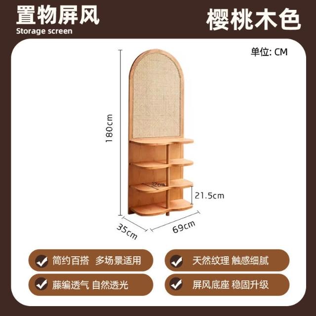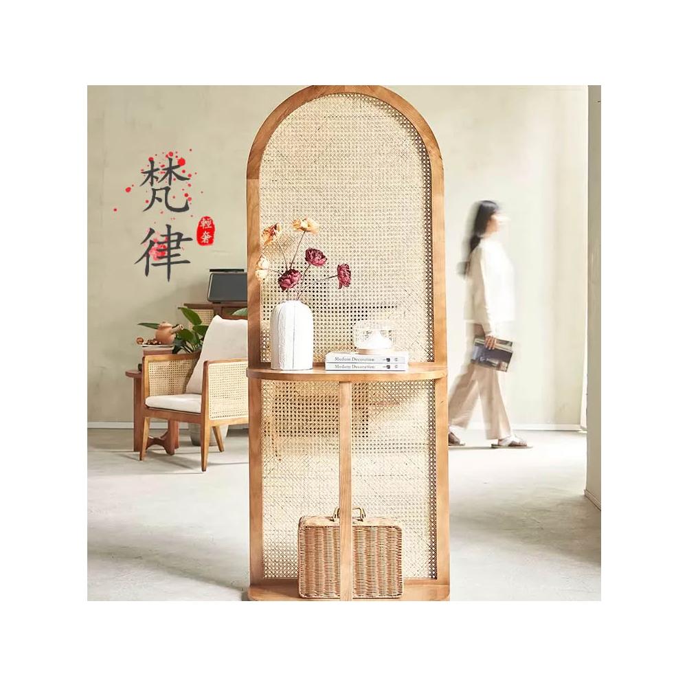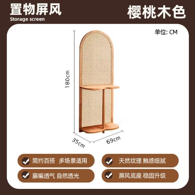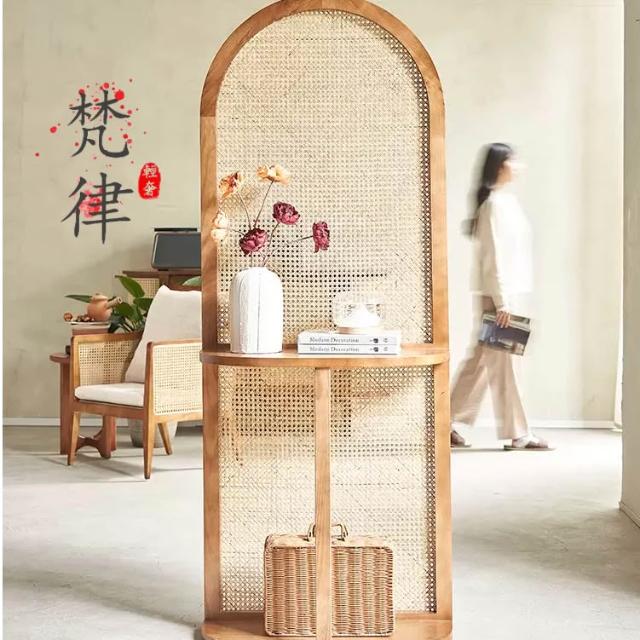 玄關屏風 屏風隔斷 置物屏風 北歐藤編屏風隔斷家用玄關置物架客廳卧室可移動遮擋復古花架座屏