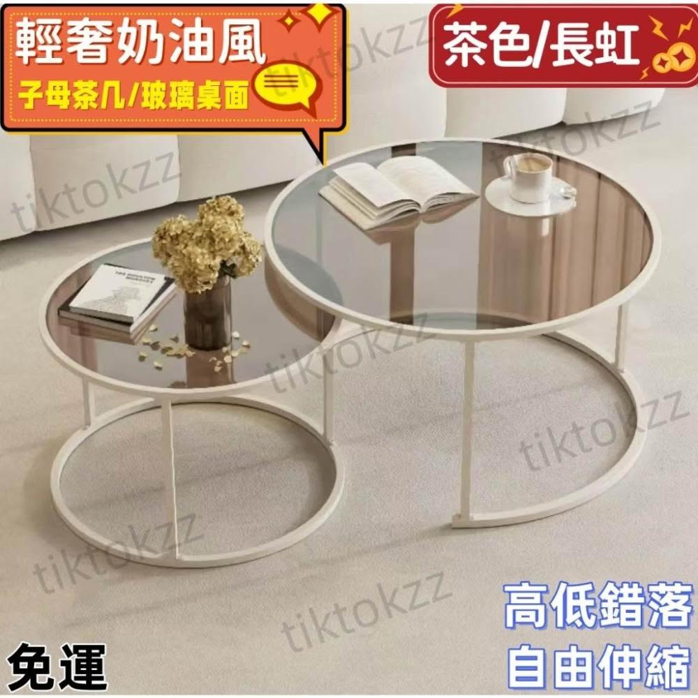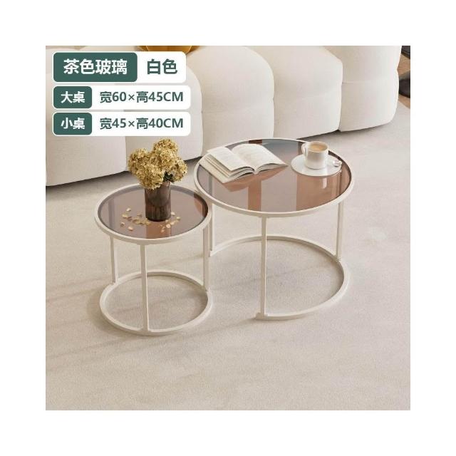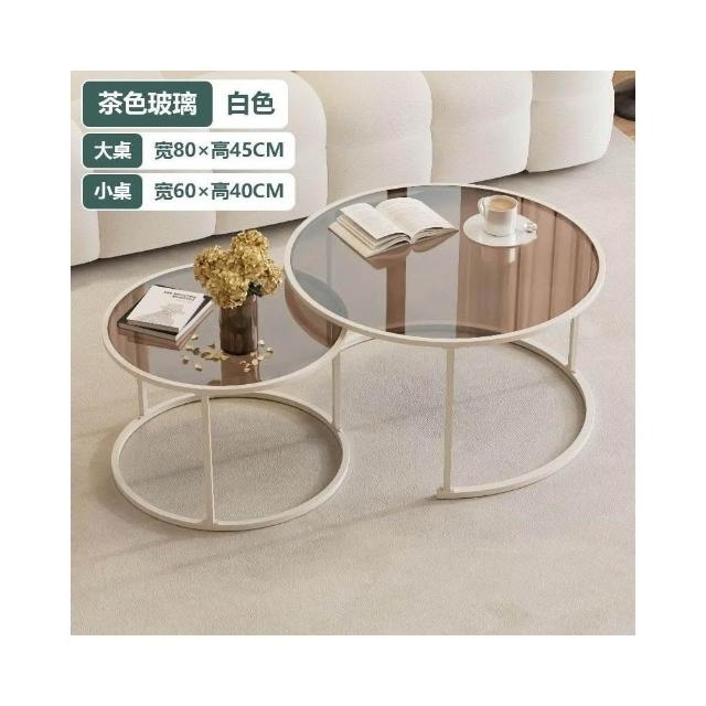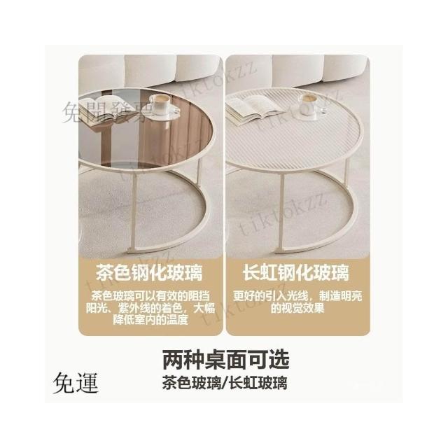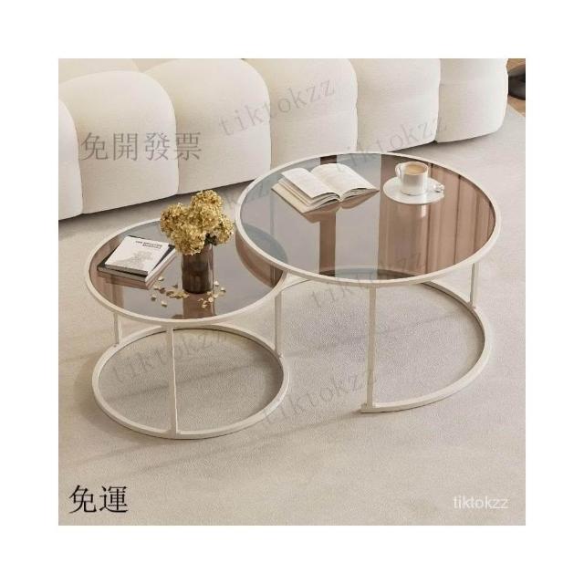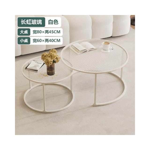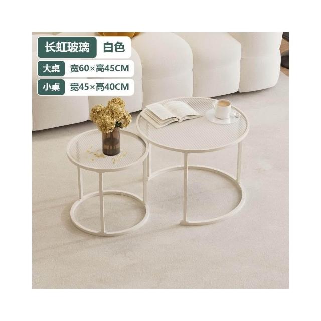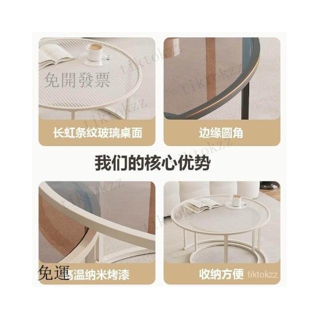 網紅ins風奶油白圓形子母茶幾小戶型傢居陽臺創意長虹玻璃小 奶油風茶几 子母茶几 圓形茶几 長虹玻璃 桌