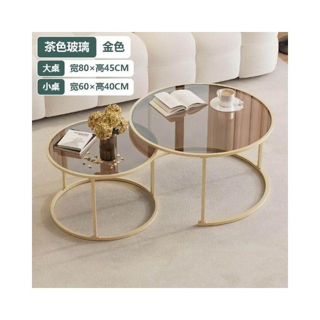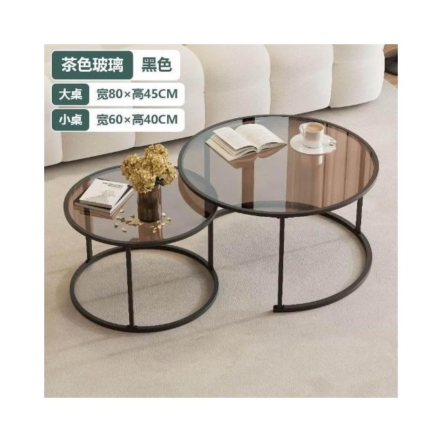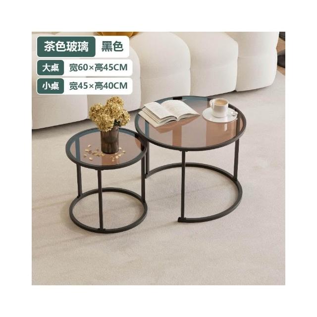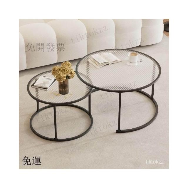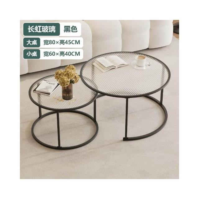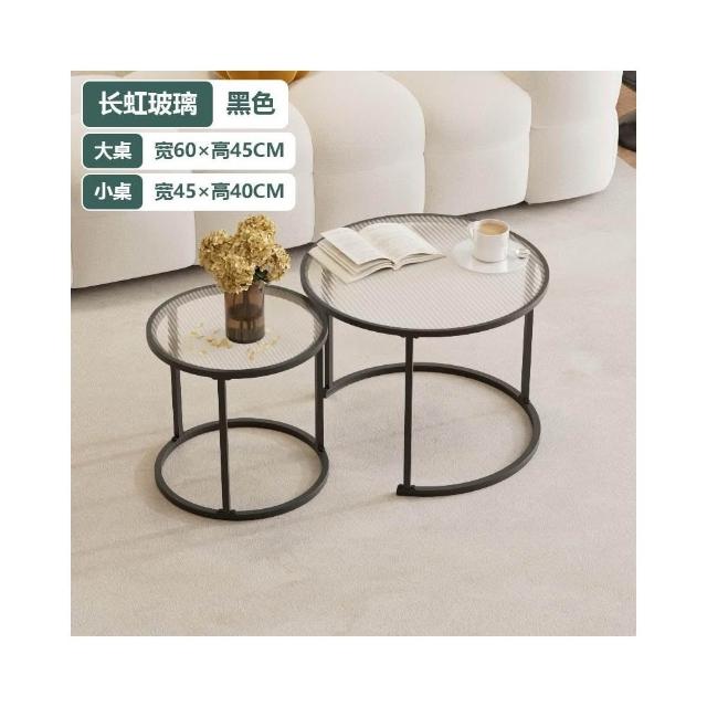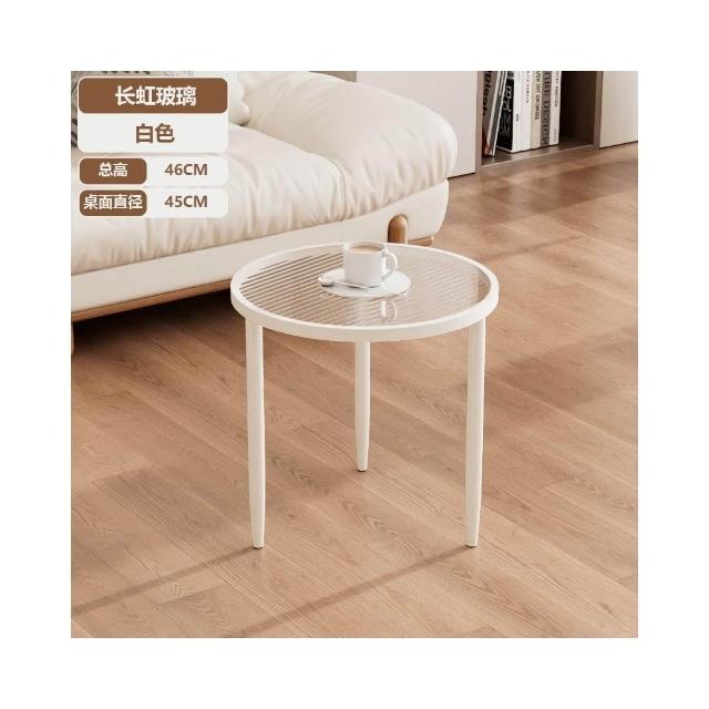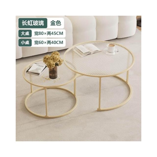 網紅ins風奶油白圓形子母茶幾小戶型傢居陽臺創意長虹玻璃小 奶油風茶几 子母茶几 圓形茶几 長虹玻璃 桌
