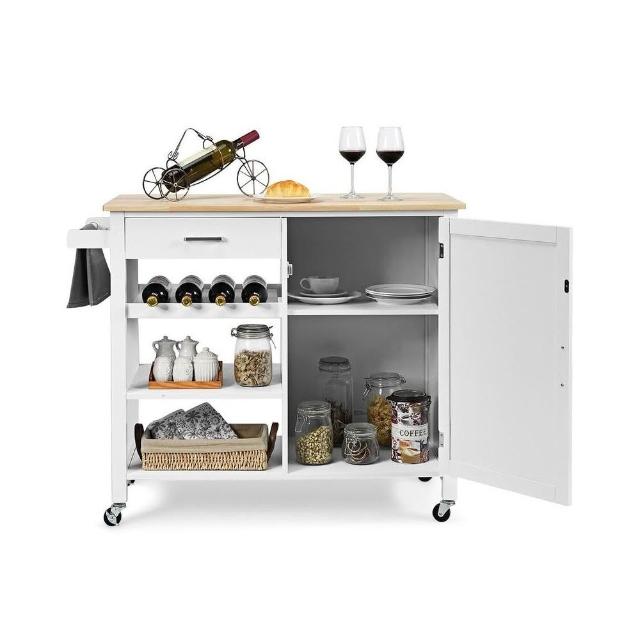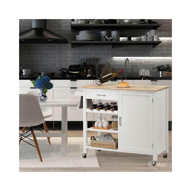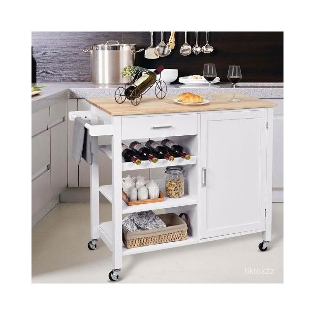 北歐廚房料理中島台 可移動 多功能切菜台吧台家用開放式 實木餐邊櫃 中島台 中島桌 吧檯桌 切菜桌