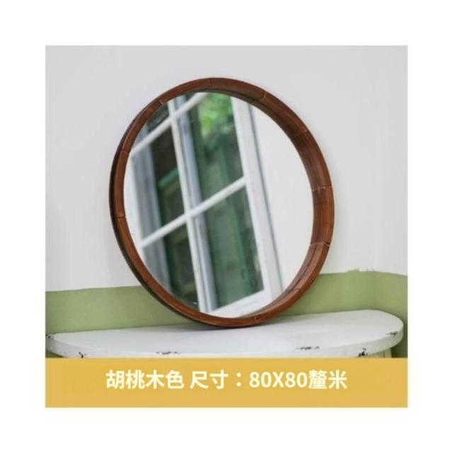 北歐胡桃木浴室鏡 復古實木圓形化妝鏡 梳妝鏡衛生間民宿掛牆圓鏡子
