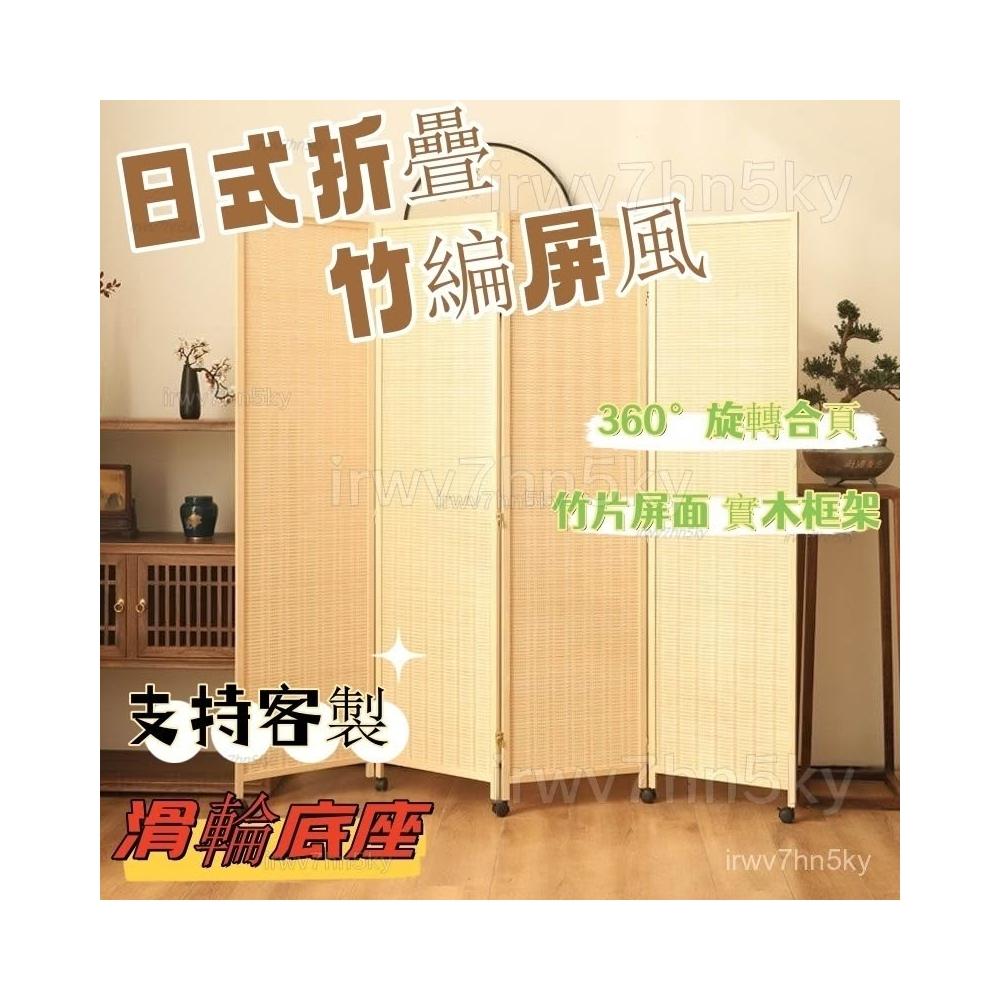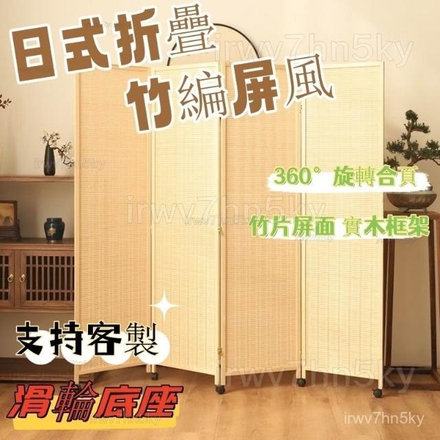 免安裝 屏風 實木立式折屏 竹編移動屏風 戶外折疊隔斷 折疊屏風 日式推拉格柵折屏