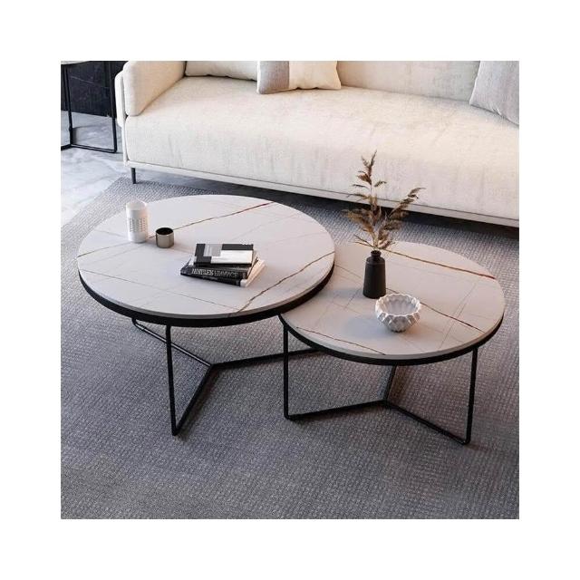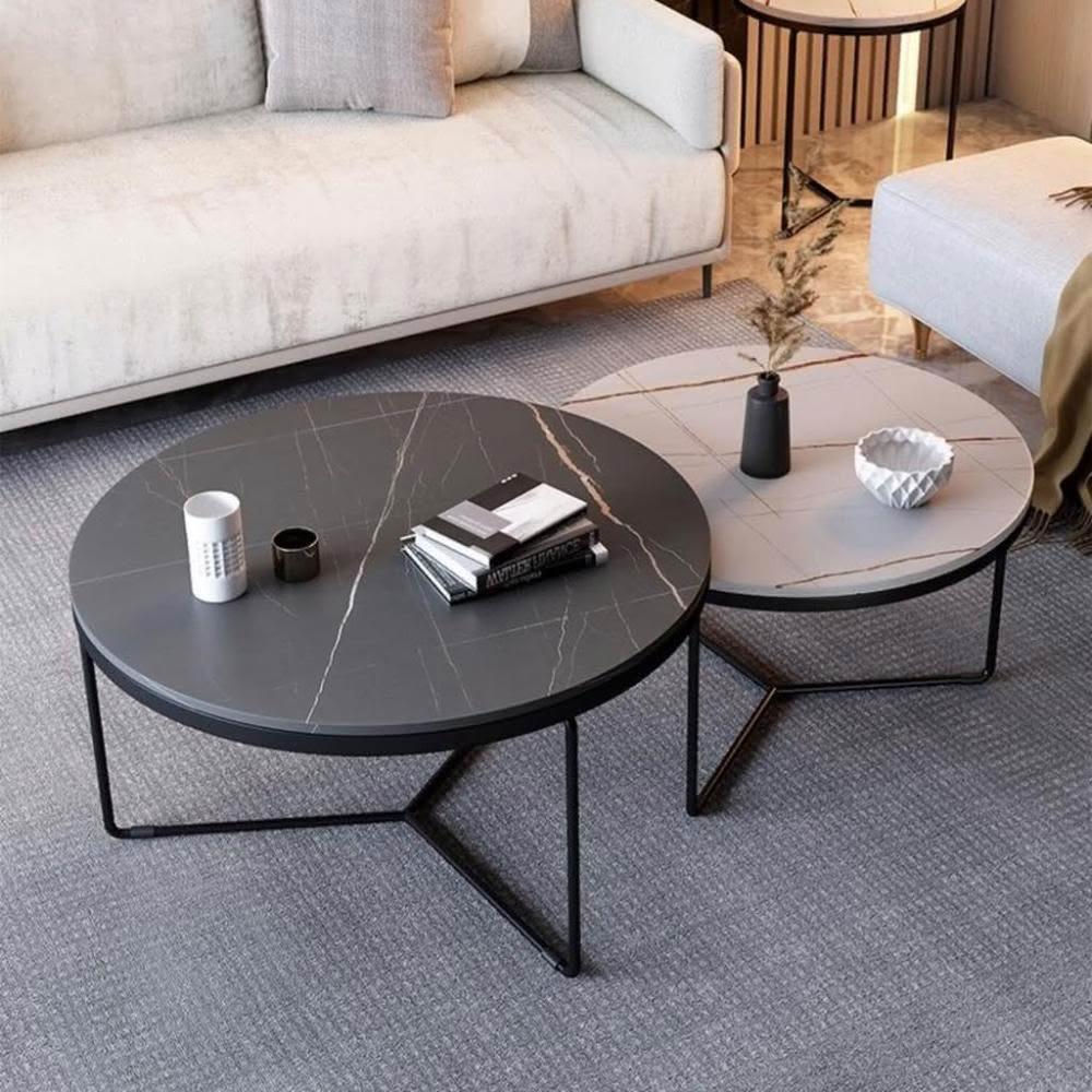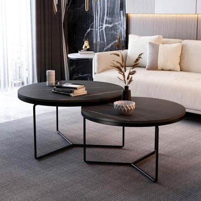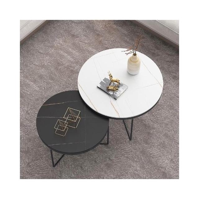 北歐巖板茶幾現代簡約小戶型客廳家用大理石茶桌輕奢圓形茶幾組合大小圓幾