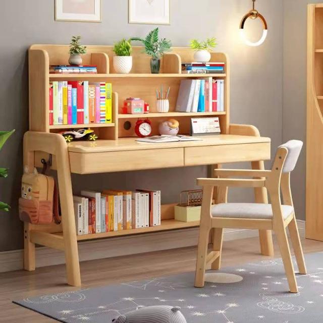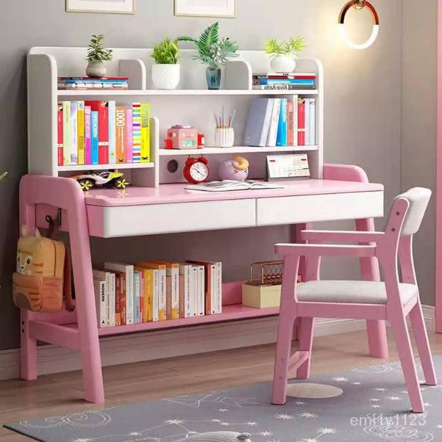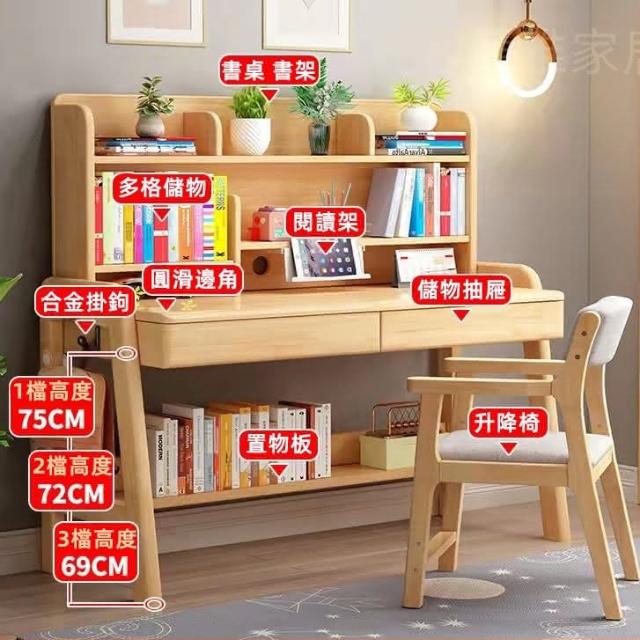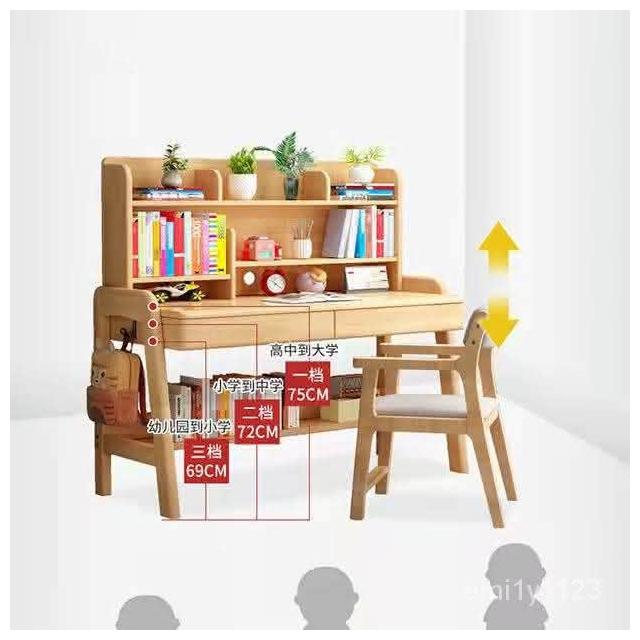 ❤️純實木免運❤️學習桌椅 成長套裝 書桌 中小學生可陞降 帶書架 寫字桌臺 寫作業 小孩簡易傢用寫字課桌 椅子