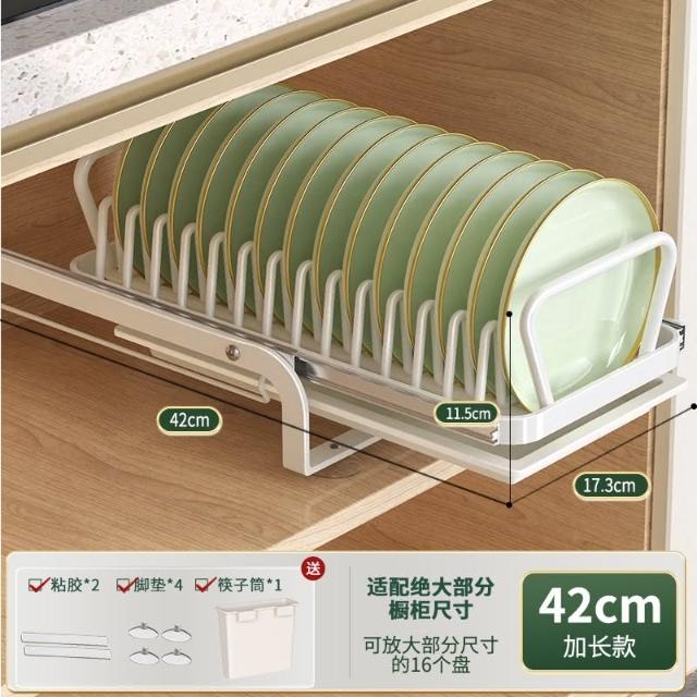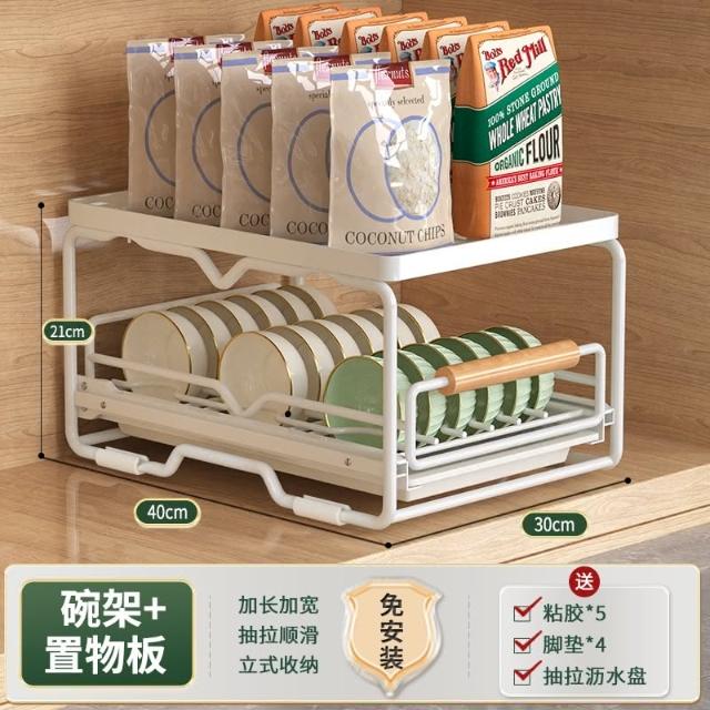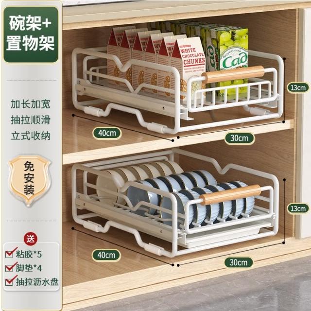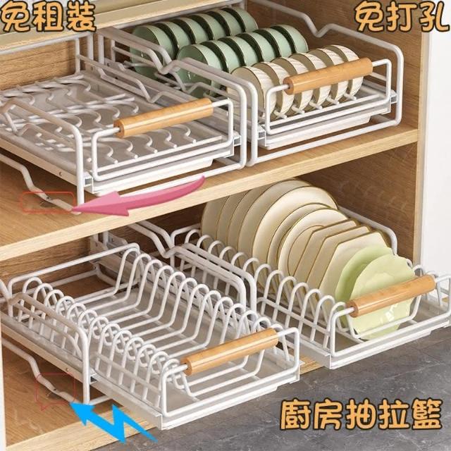 免運 免安裝優惠價 雙層抽拉 櫥櫃拉籃抽屜 廚房碗碟收納架 碗盤收納架 抽拉式盤架 碗盤收納盒盤子收納架 碗盤架 置物架