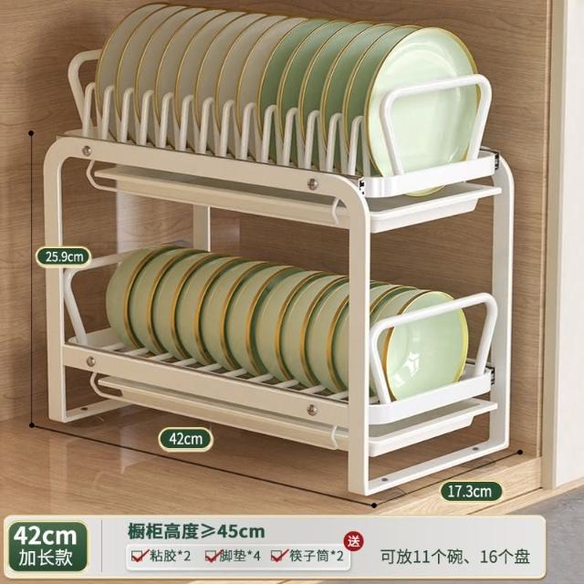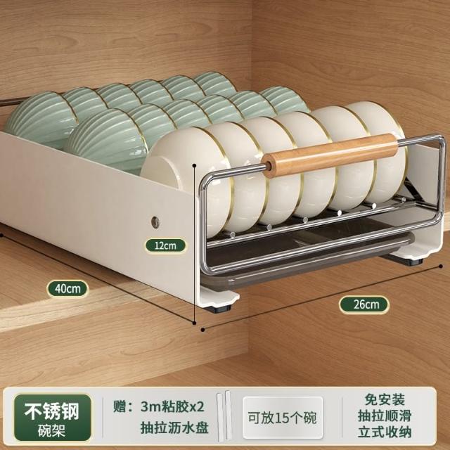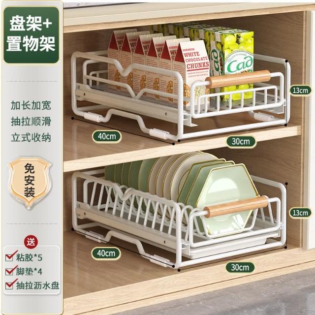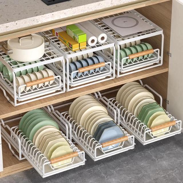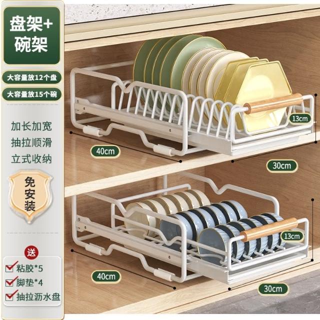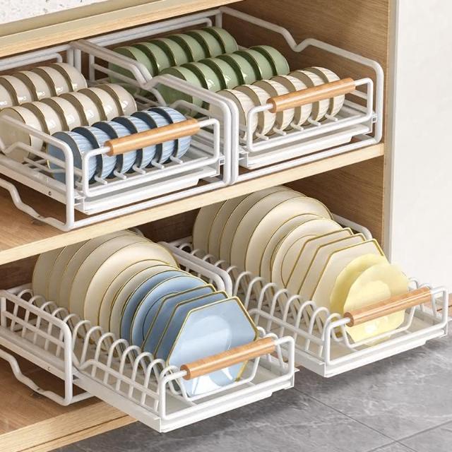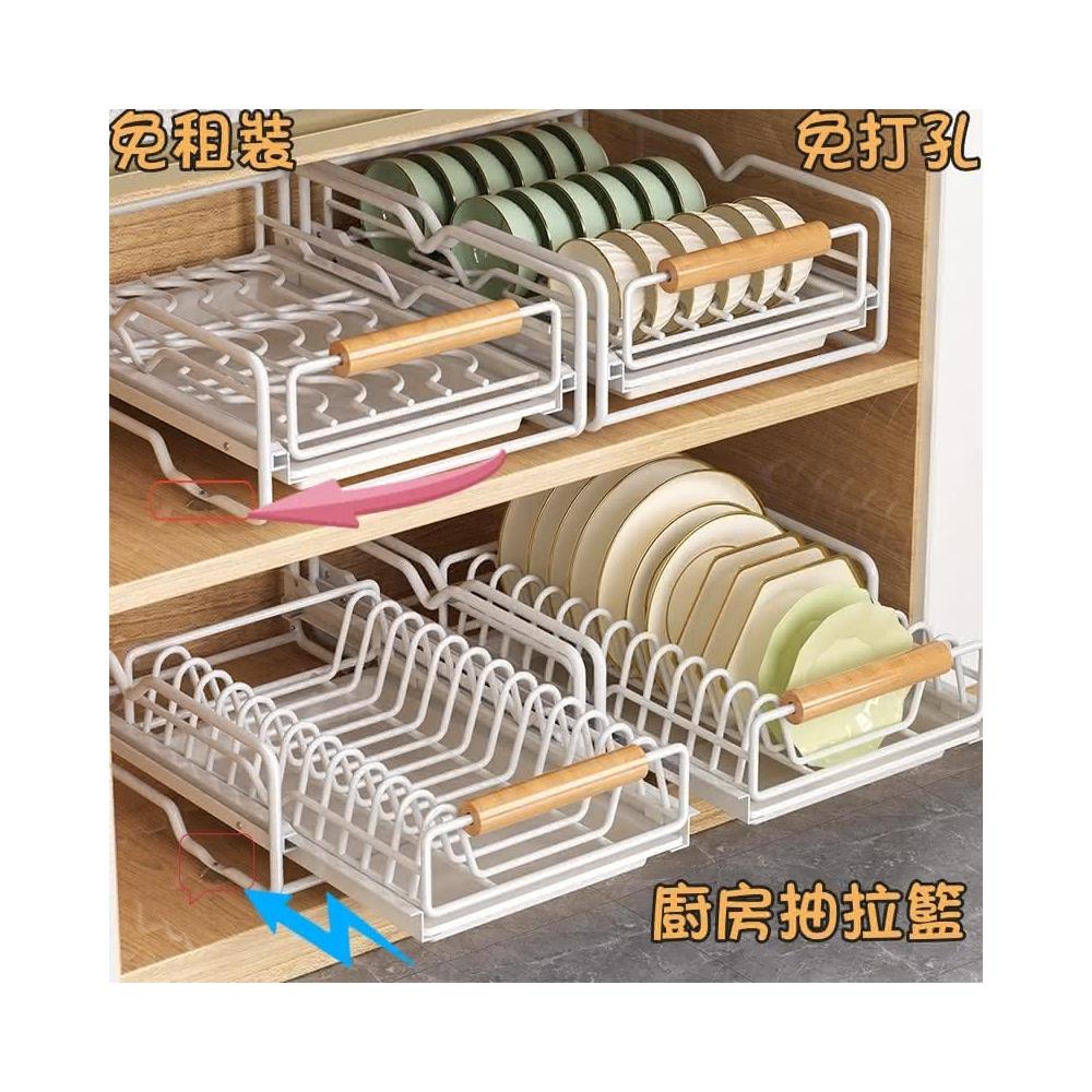 免運 免安裝優惠價 雙層抽拉 櫥櫃拉籃抽屜 廚房碗碟收納架 碗盤收納架 抽拉式盤架 碗盤收納盒盤子收納架 碗盤架 置物架