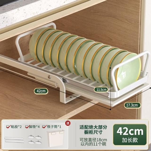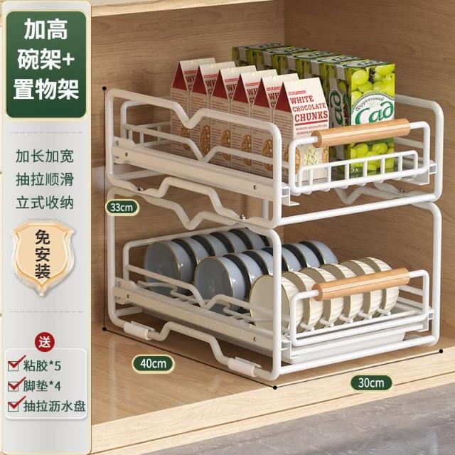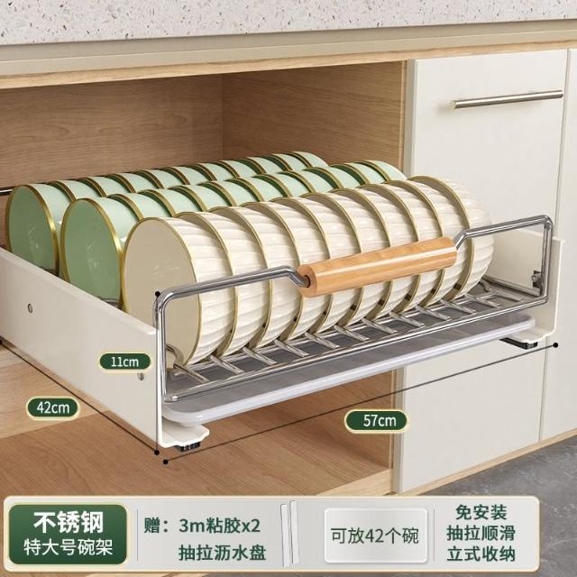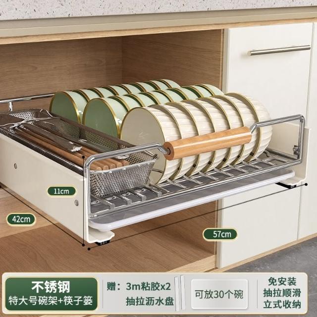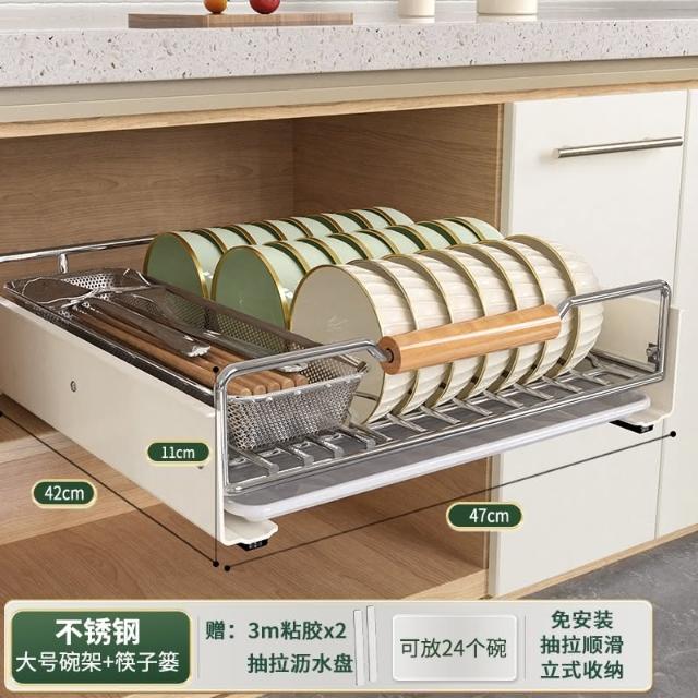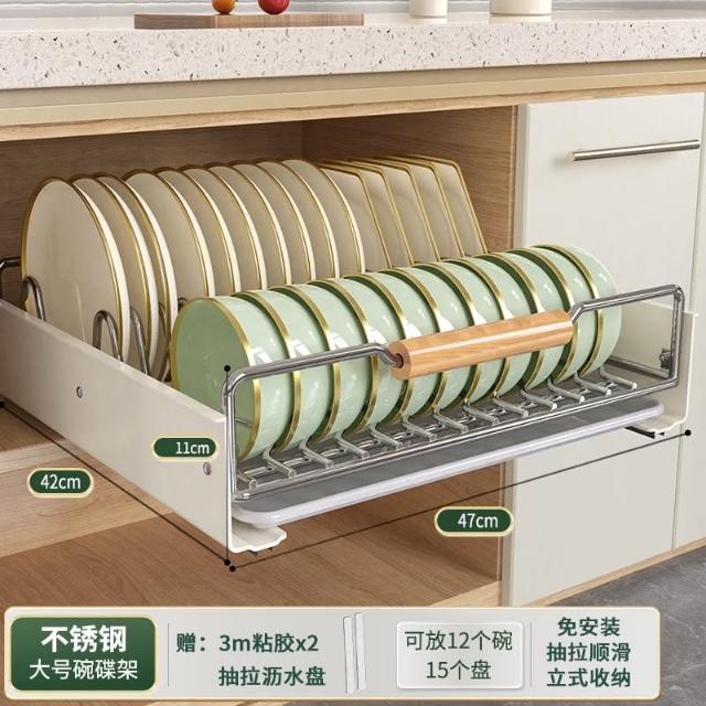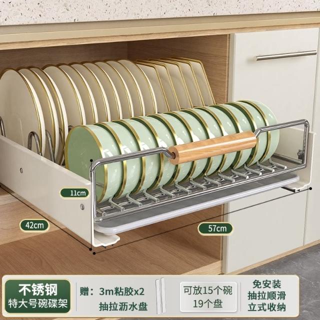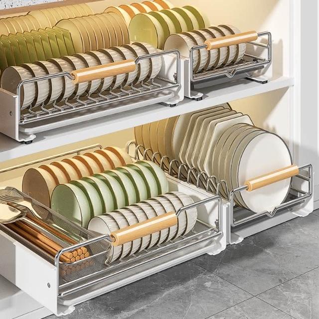 免運 免安裝優惠價 雙層抽拉 櫥櫃拉籃抽屜 廚房碗碟收納架 碗盤收納架 抽拉式盤架 碗盤收納盒盤子收納架 碗盤架 置物架