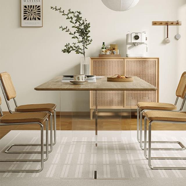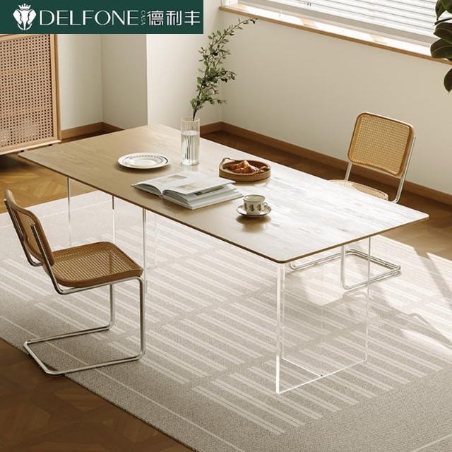 廠家直銷⚡德利豐木紋巖闆餐桌現代簡約小戶型家用亞剋力懸浮島臺長方形餐桌