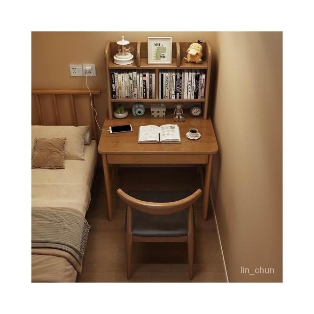 60cm床邊小書桌臥室單人角落電腦桌小戶型家用實木學習桌椅組閤