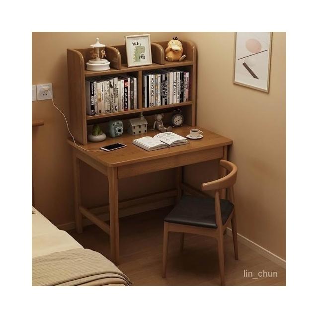 60cm床邊小書桌臥室單人角落電腦桌小戶型家用實木學習桌椅組閤