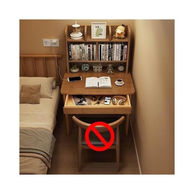 60cm床邊小書桌臥室單人角落電腦桌小戶型家用實木學習桌椅組閤