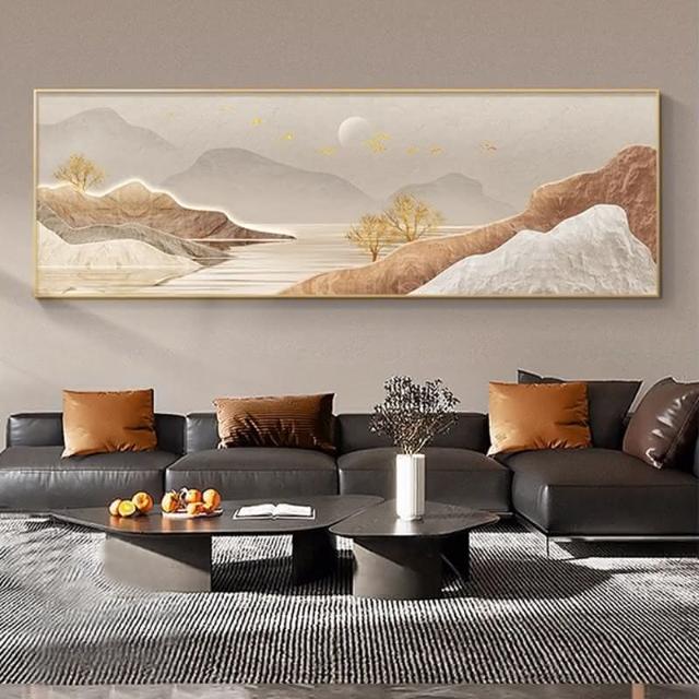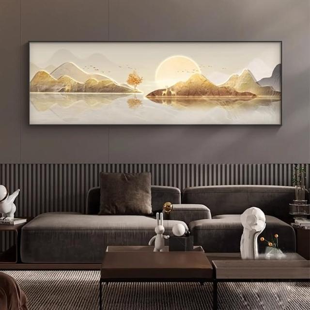 旭日東昇山水畫客廳裝飾畫 一整幅日出靠山壁畫 橫版沙發背景牆掛畫