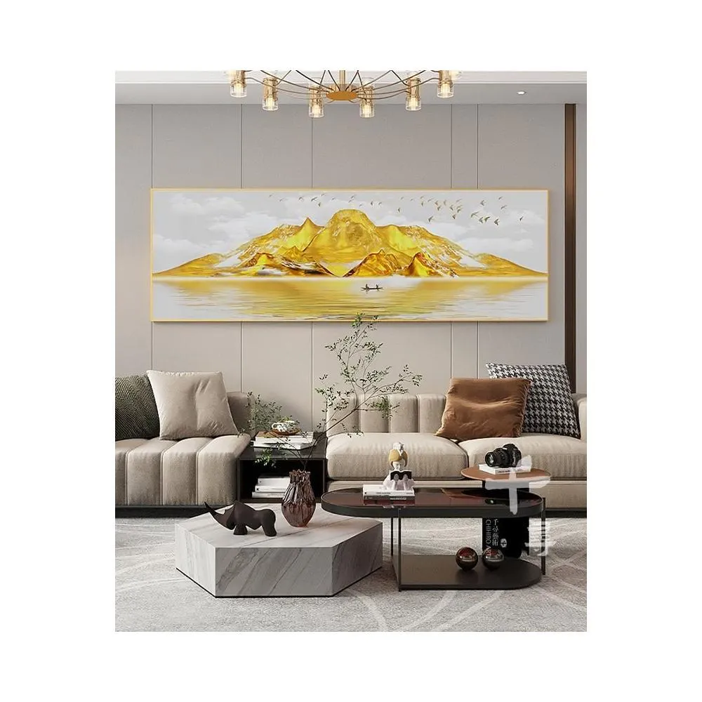 輕奢大氣山水客廳沙發背景牆橫幅裝飾畫 背靠金山招財 臥室床頭掛畫 風水壁畫