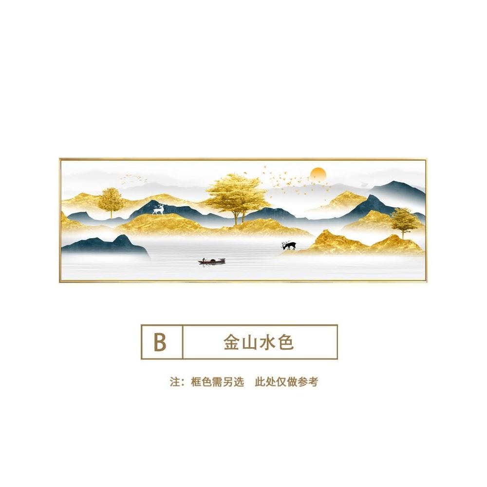 輕奢大氣山水客廳沙發背景牆橫幅裝飾畫 背靠金山招財 臥室床頭掛畫 風水壁畫