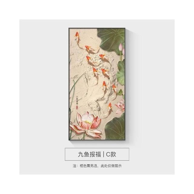 🍂九魚圖 玄關裝飾畵 走廊過道掛畵 寓意好 荷花入戶門正對墻壁畵 家居裝飾畫 招財掛畫 裝飾畫