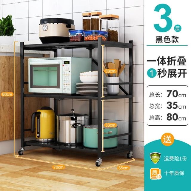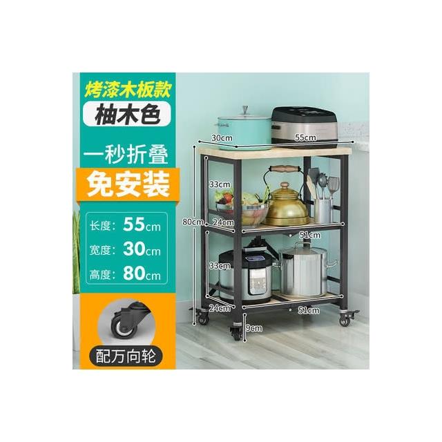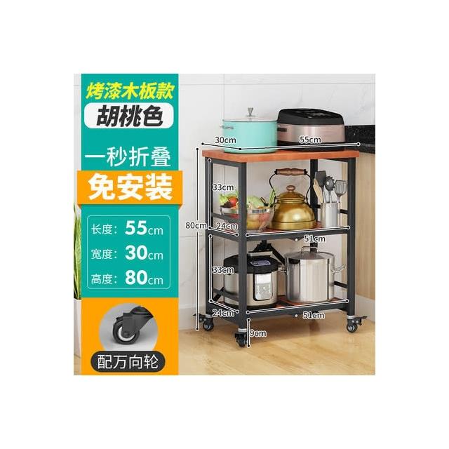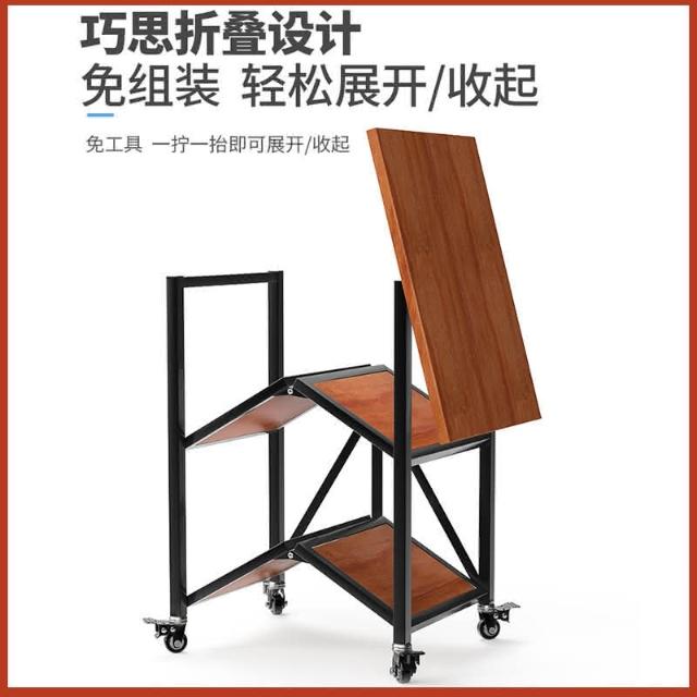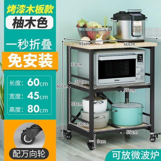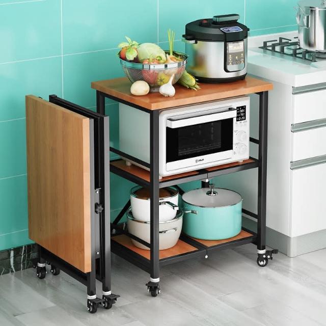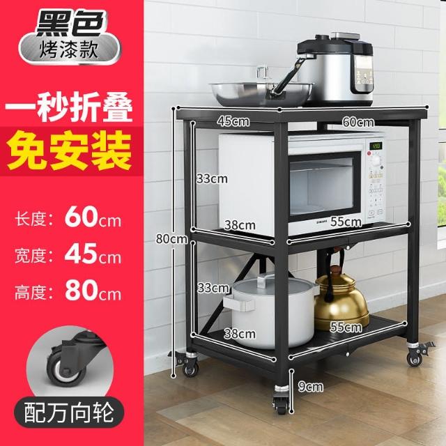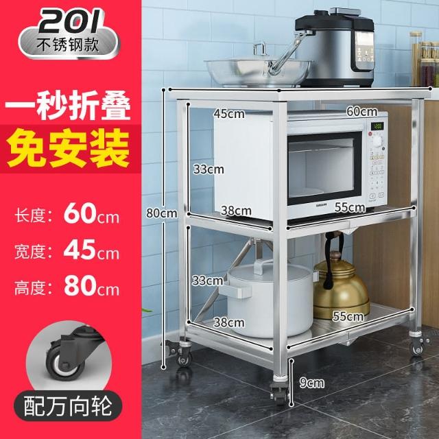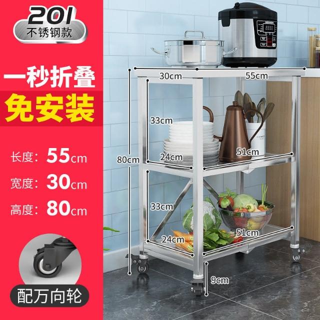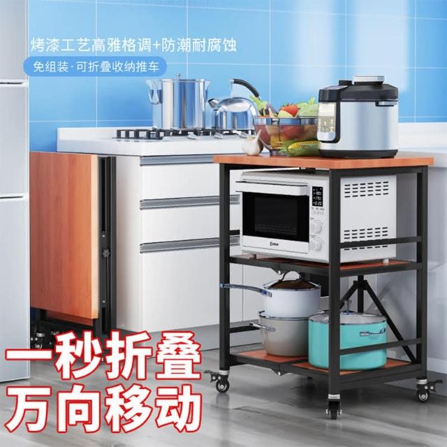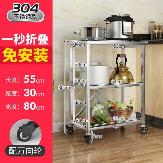 置物架廚房可移動不銹鋼推車摺疊落地微波爐烤箱免安裝儲物架帶輪/廠家直銷