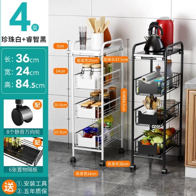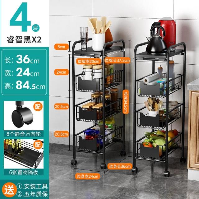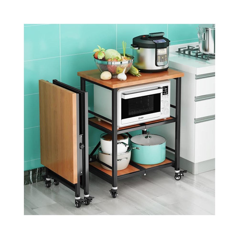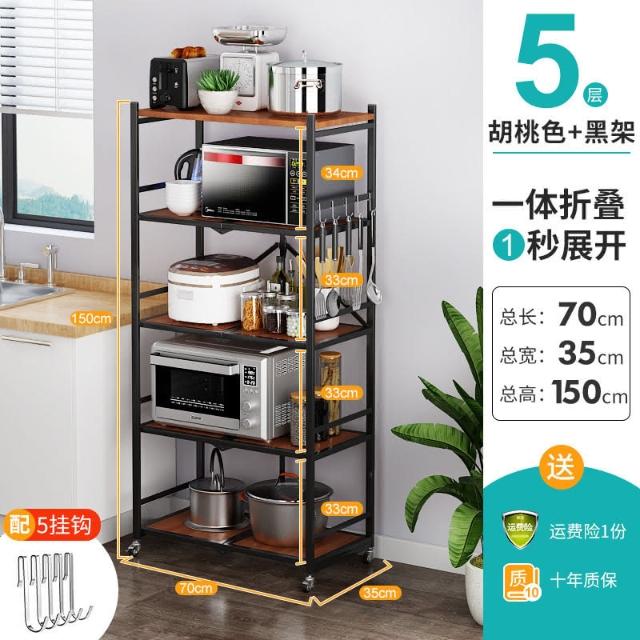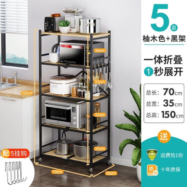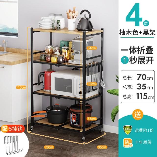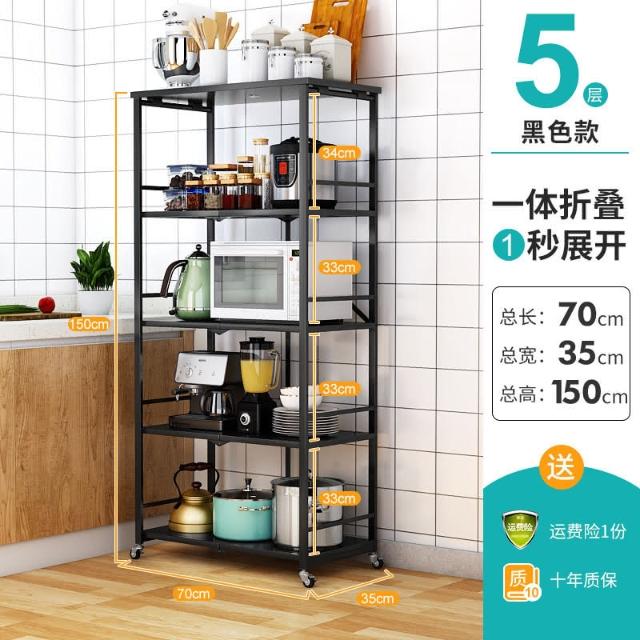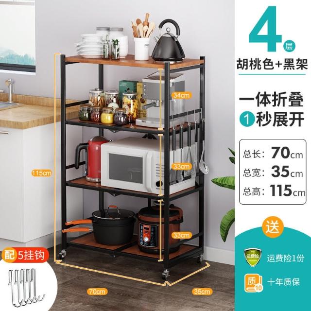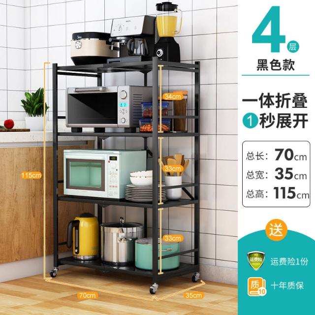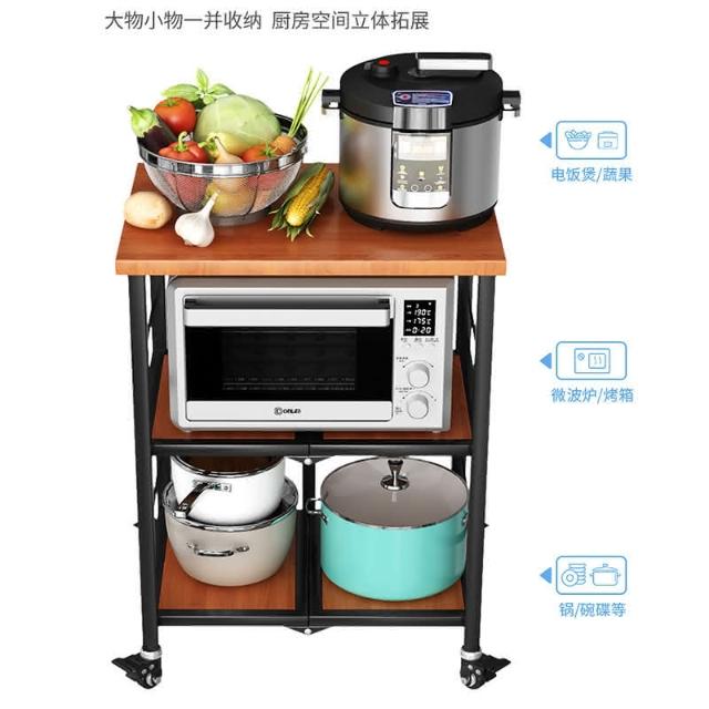 置物架廚房可移動不銹鋼推車摺疊落地微波爐烤箱免安裝儲物架帶輪/廠家直銷