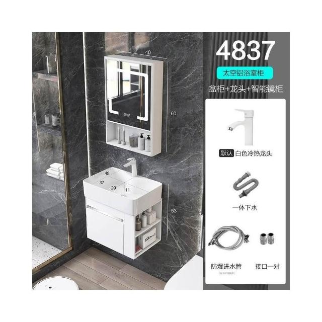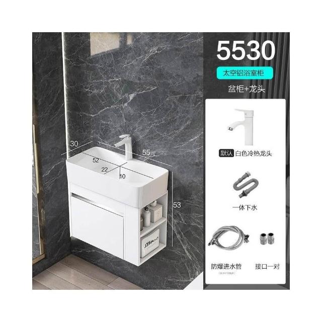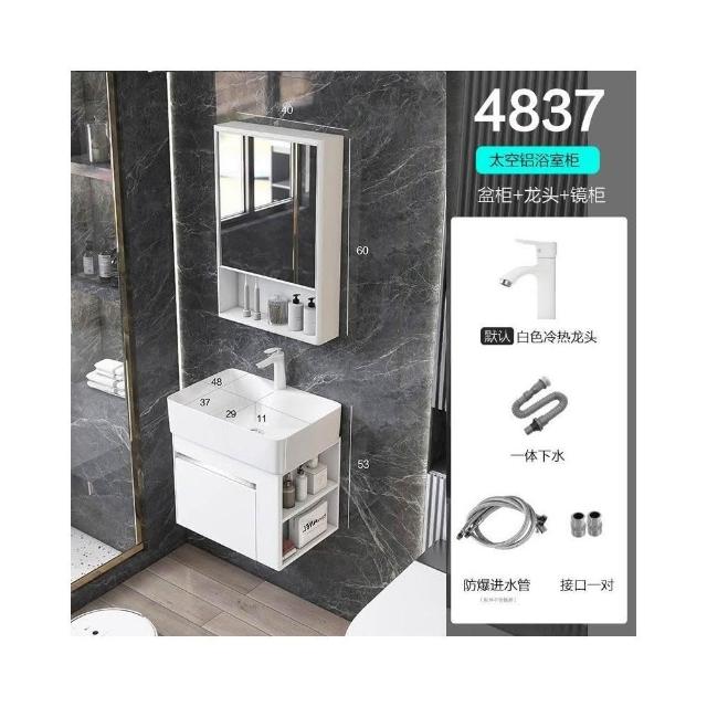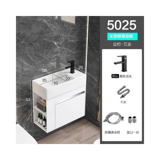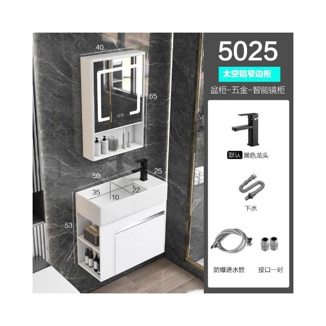洗手台 浴室洗手台窄 側邊收納太空鋁浴室櫃 小戶型洗手台盆 鏡櫃浴櫃組合 一體洗漱台 洗臉盆