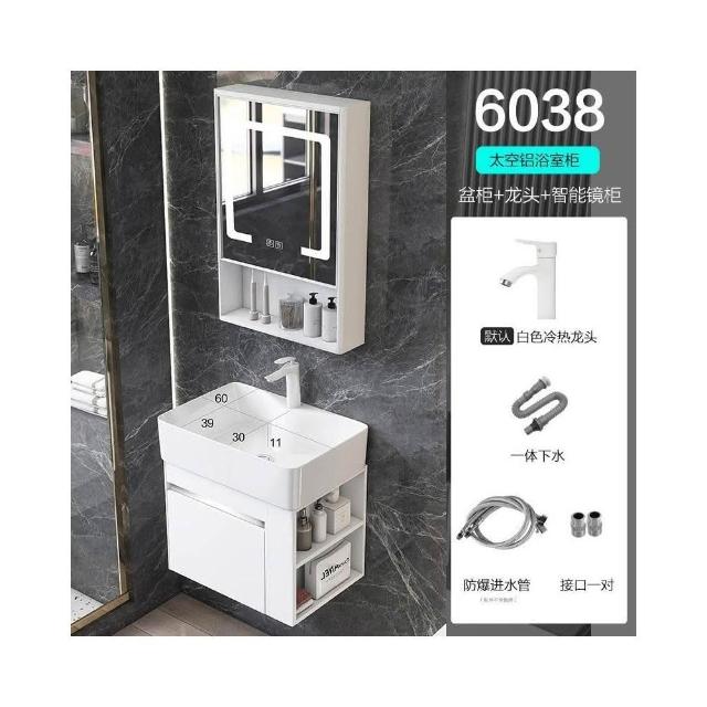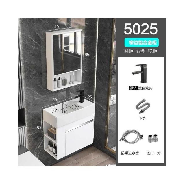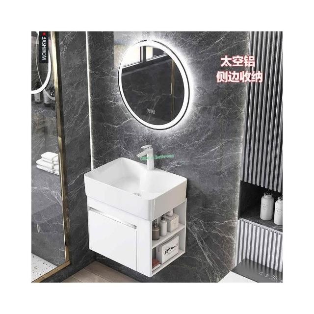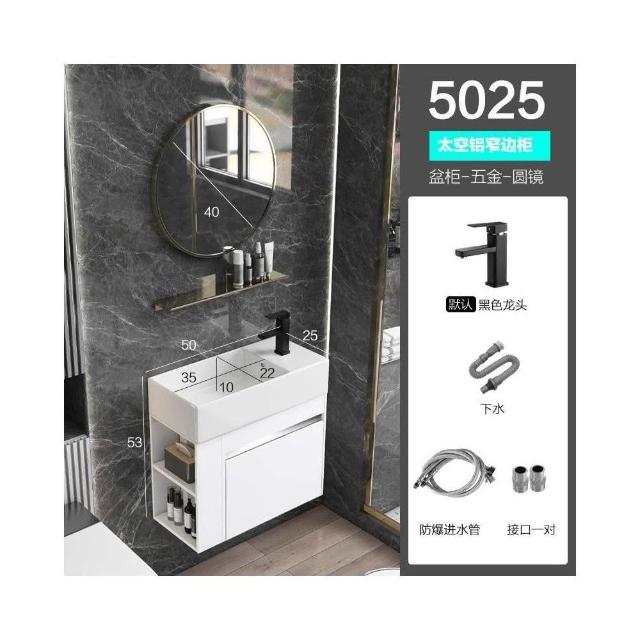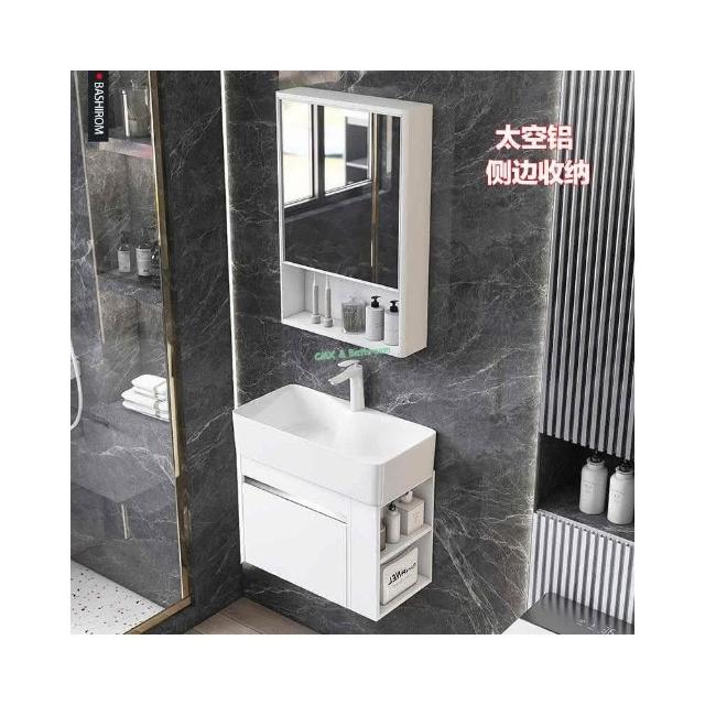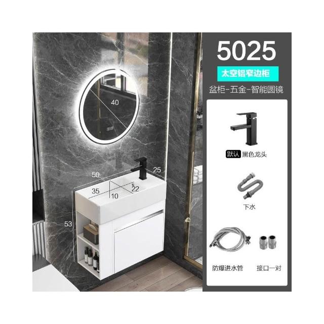 洗手台 浴室洗手台窄 側邊收納太空鋁浴室櫃 小戶型洗手台盆 鏡櫃浴櫃組合 一體洗漱台 洗臉盆