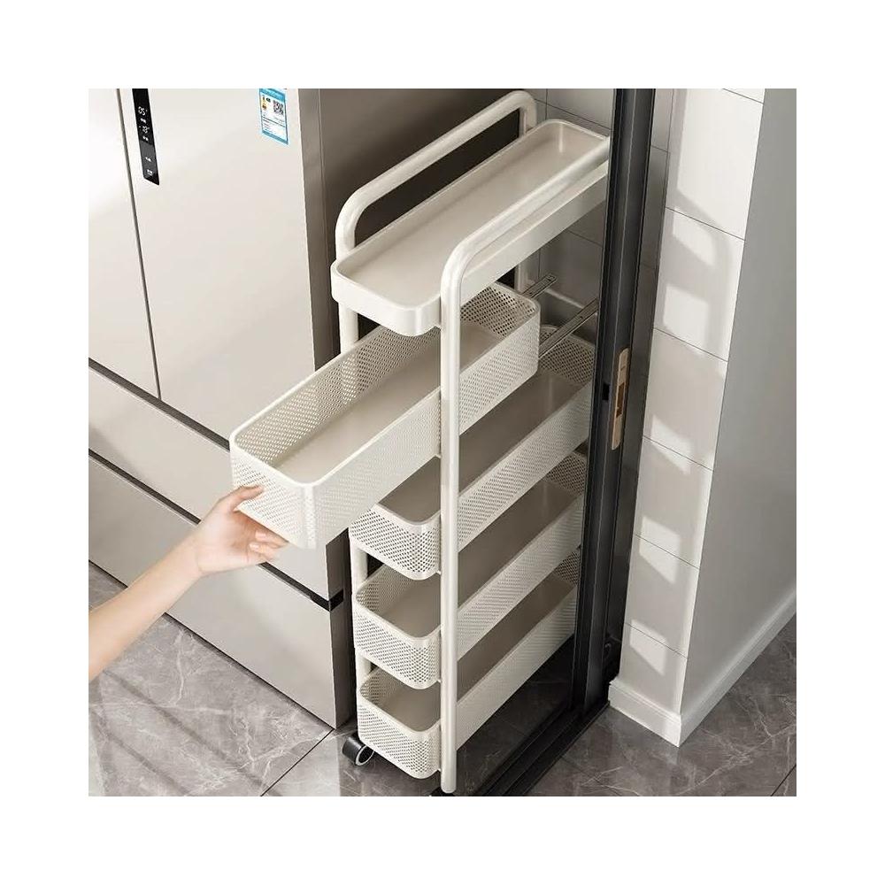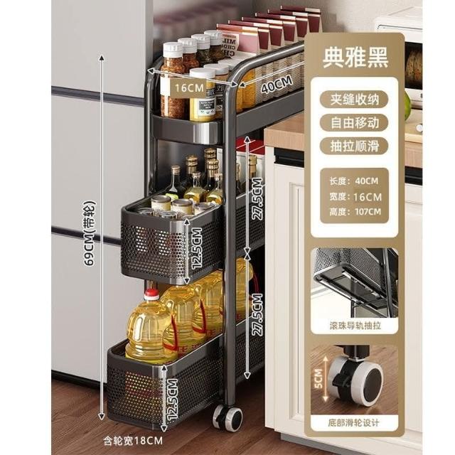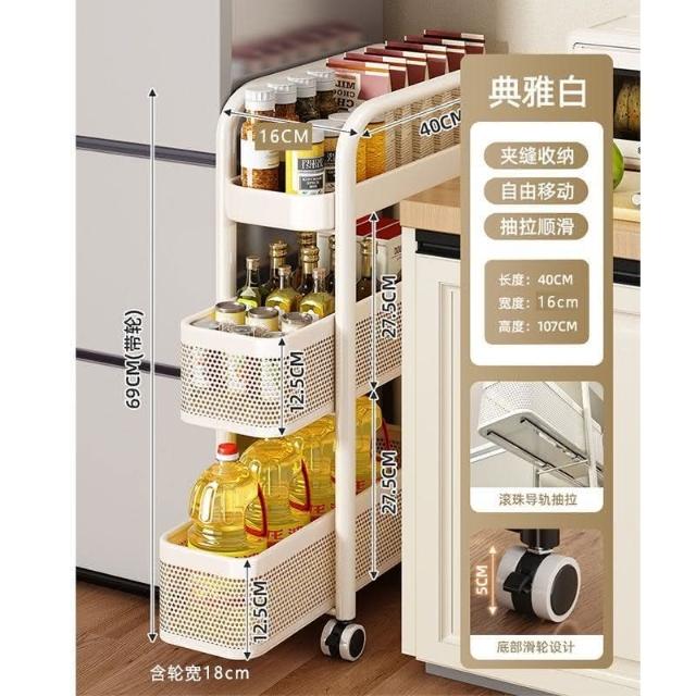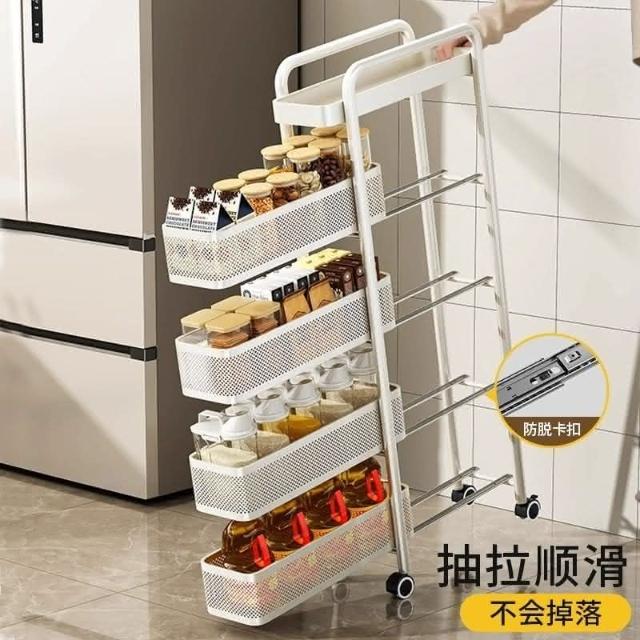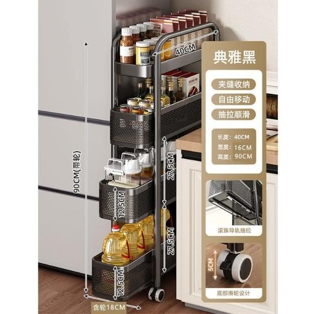 可抽拉抽屜推車夾縫置物架小推車冰箱側麵櫃窄縫隙收納多層儲物架