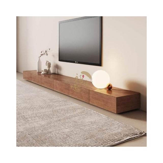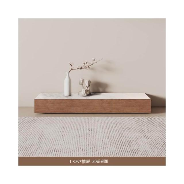 電視柜 原木風胡桃木色電視柜巖板客廳極簡小戶型北歐實木方形地柜電視機