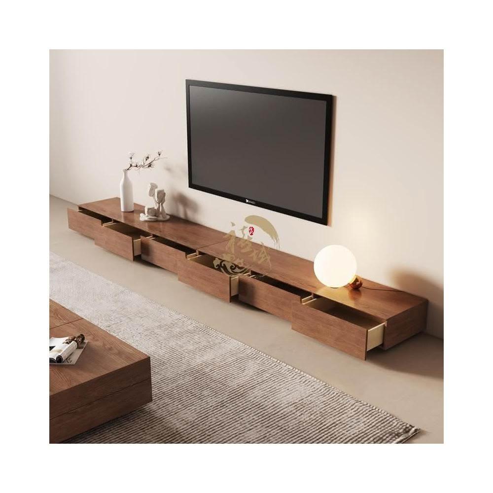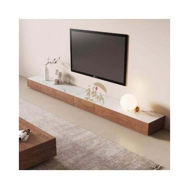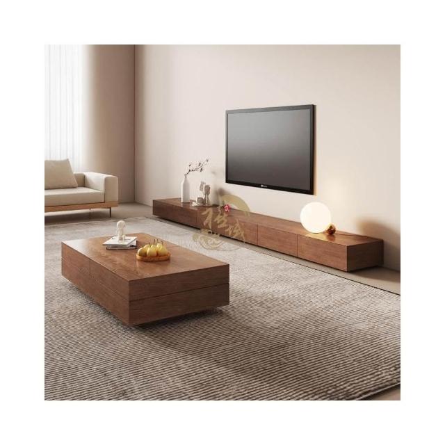 電視柜 原木風胡桃木色電視柜巖板客廳極簡小戶型北歐實木方形地柜電視機