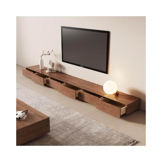 電視柜 原木風胡桃木色電視柜巖板客廳極簡小戶型北歐實木方形地柜電視機