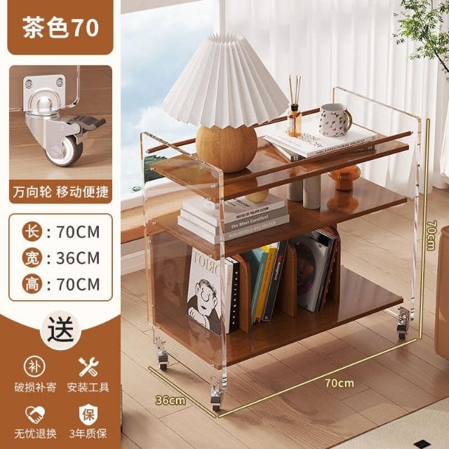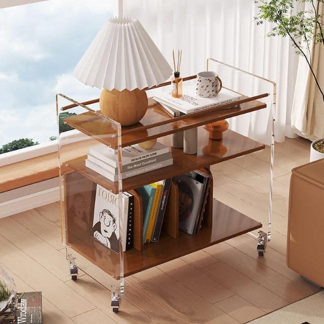 北歐簡約實木收納茶幾家用置物架客廳小推車沙髮邊櫃現代多層移動