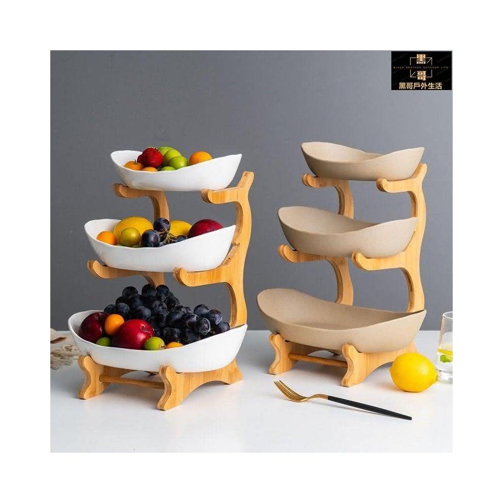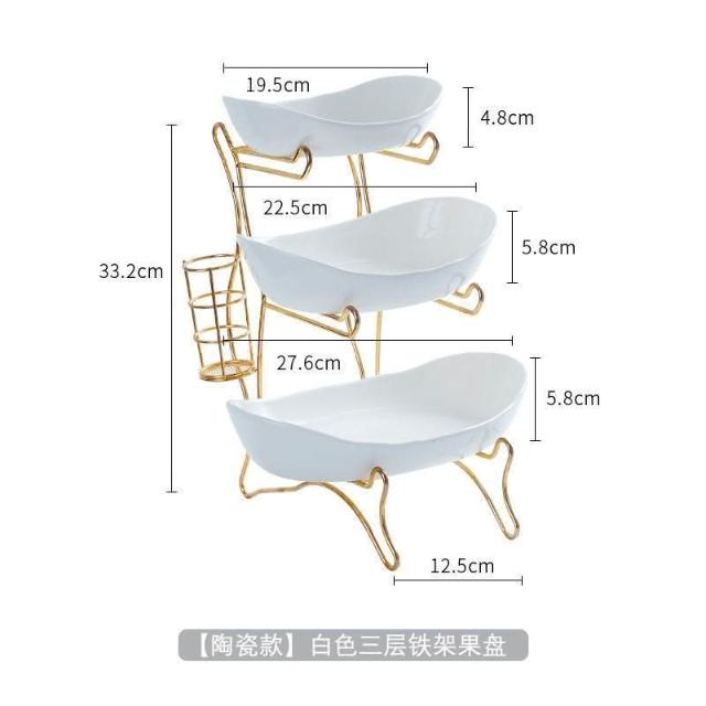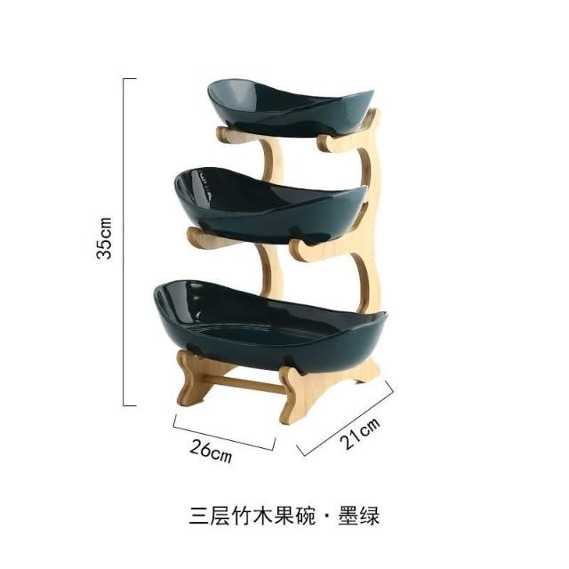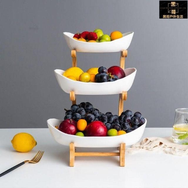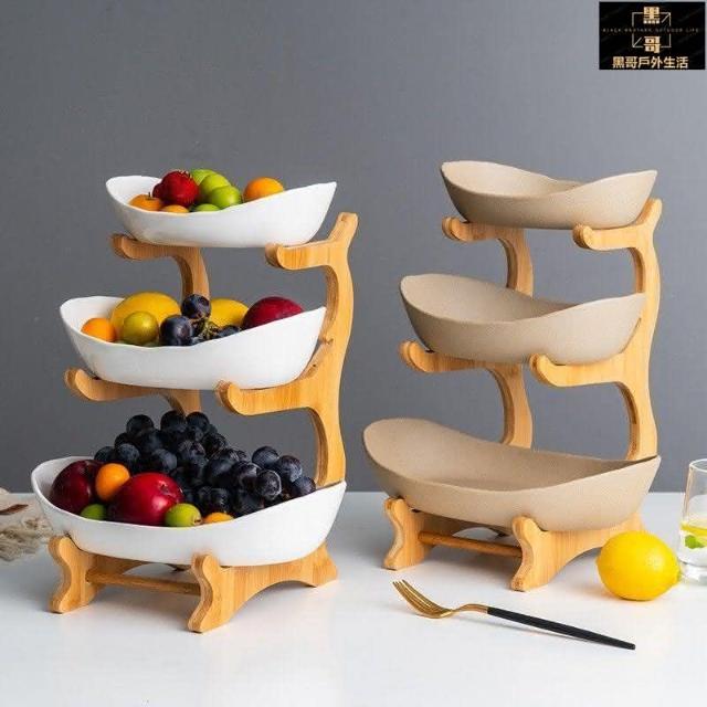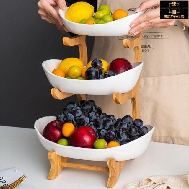 糖果盤 零食盤 水果盤 托盤 點心盤 水果盤 盤子 甜品盤 創意三層多層水果盤歐式陶瓷干果盤竹木架家用零食盤糖果托盤果籃