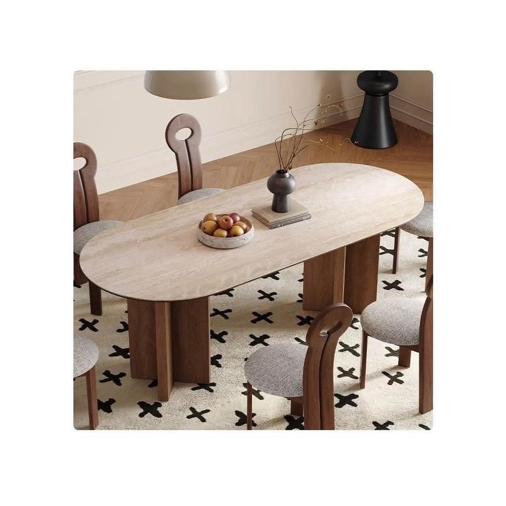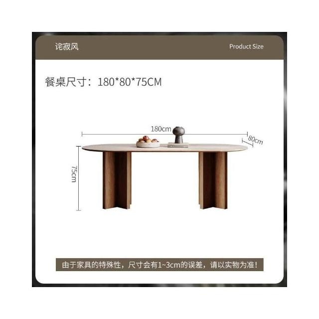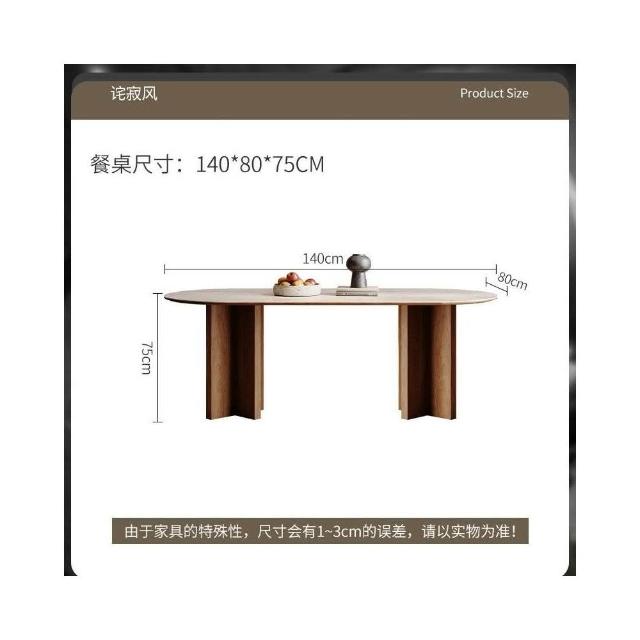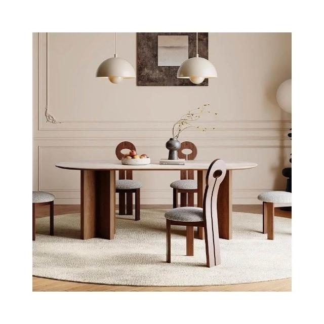 侘寂風實木小戶型洞石岩板闆餐桌椅北美黑胡桃輕法式橢圓餐桌