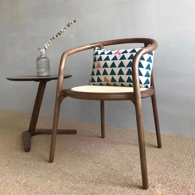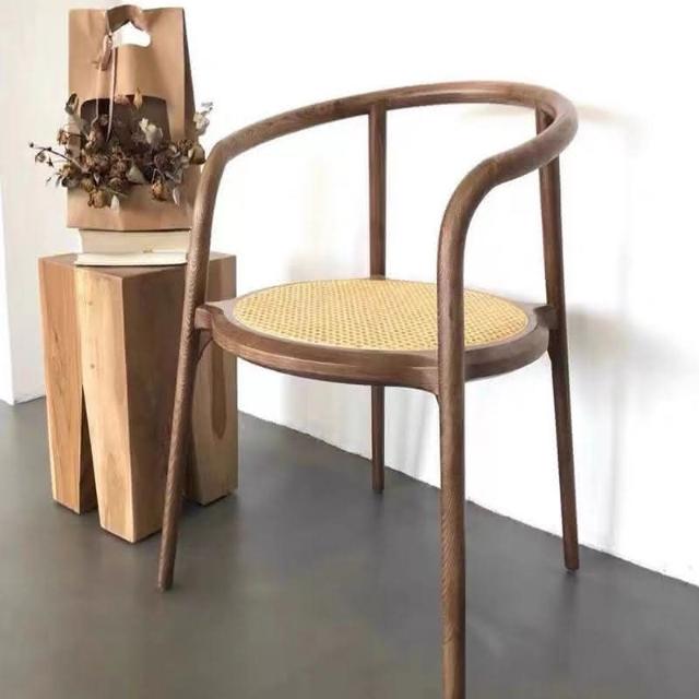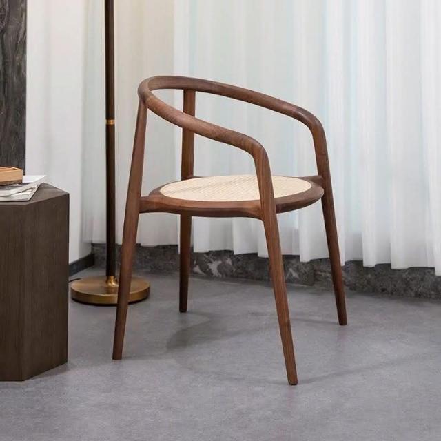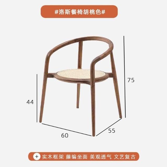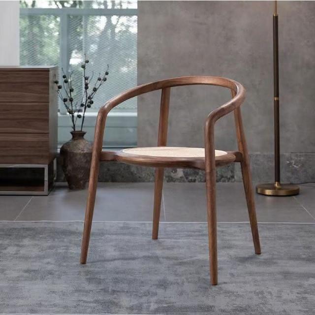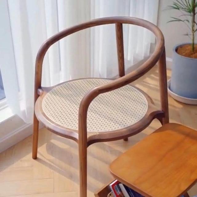 北歐圈椅藤編實木椅子新中式茶室茶葉店扶手椅靠背餐椅休閒洛斯椅