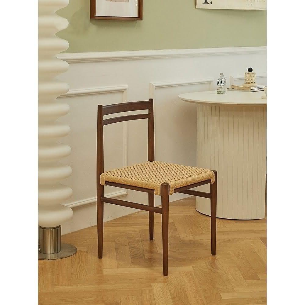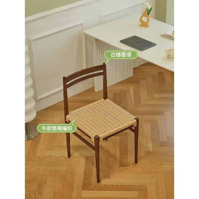 免運 中古侘寂風複古藤編織實木餐椅書桌椅靠背民宿陽臺餐廳洽談餐桌椅