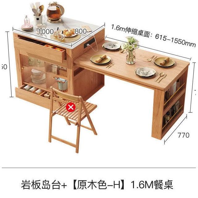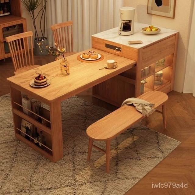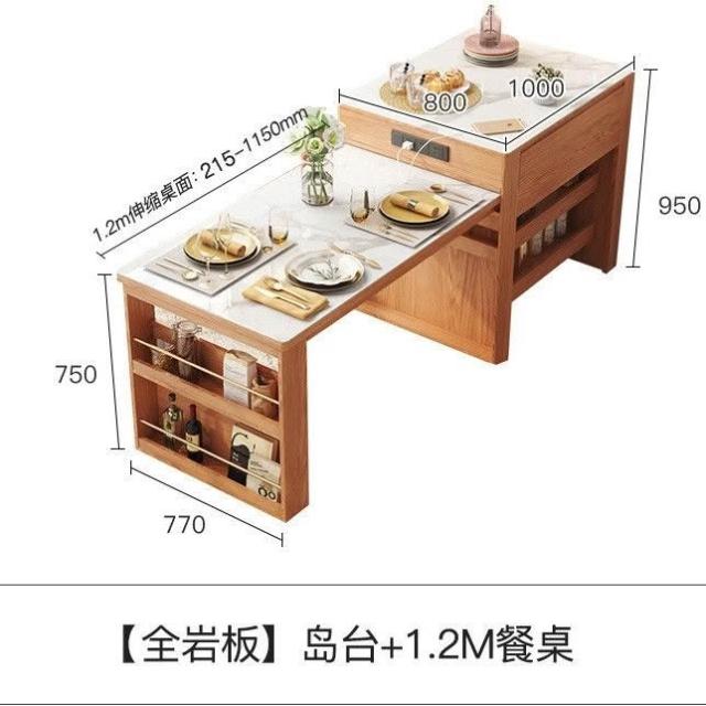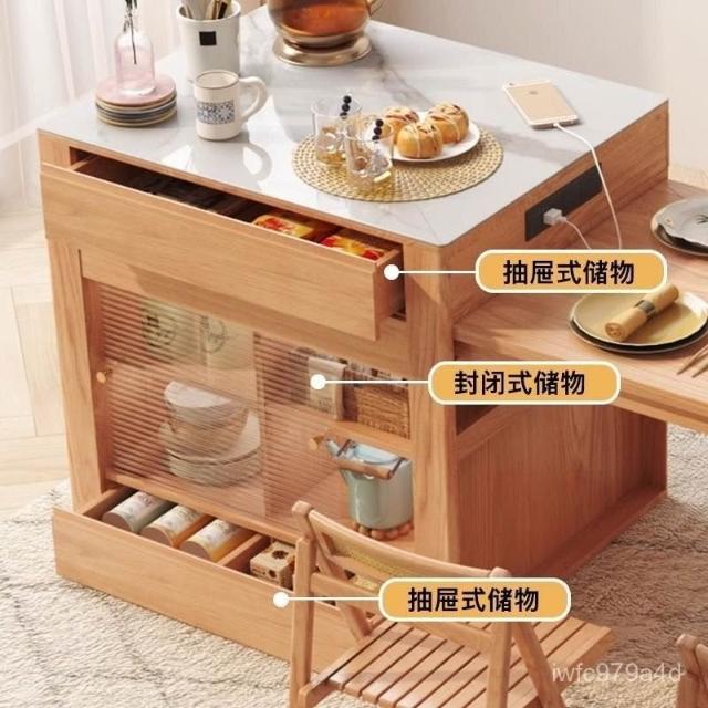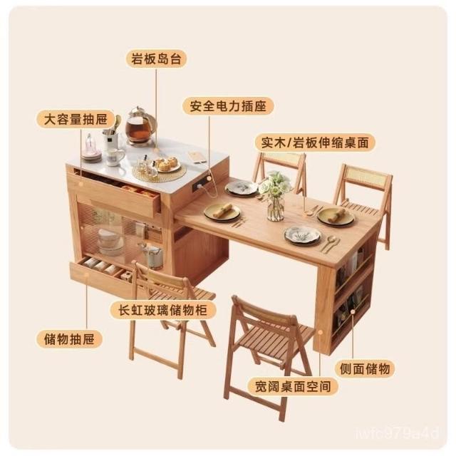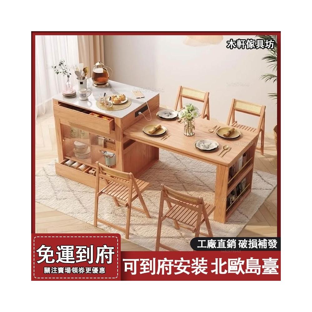 北歐實木島臺 免運 可到府安裝 伸縮餐桌 小戶型餐桌 多功能餐桌 島台餐桌 岩板餐桌 伸縮吧台 旋轉餐桌