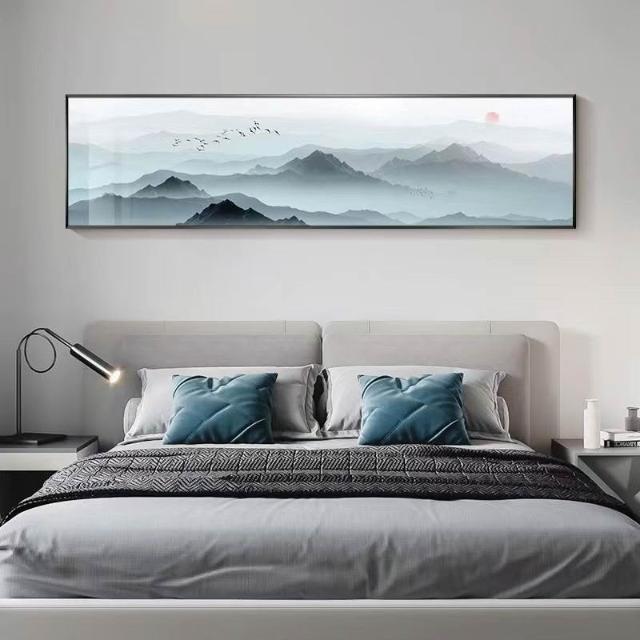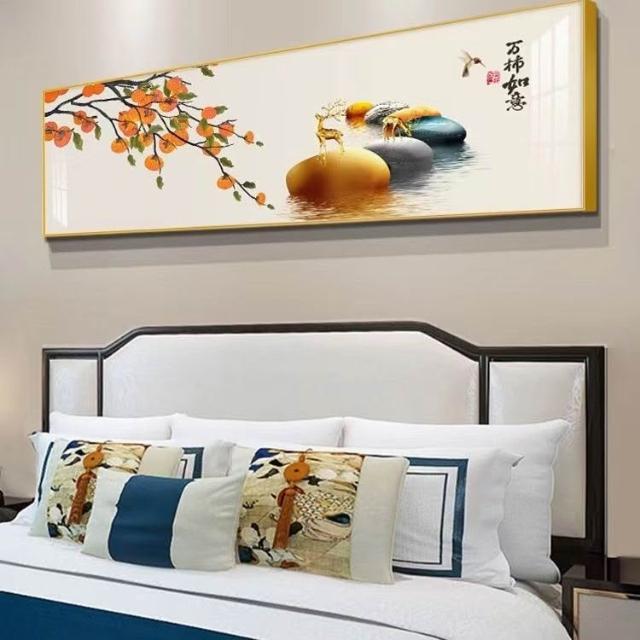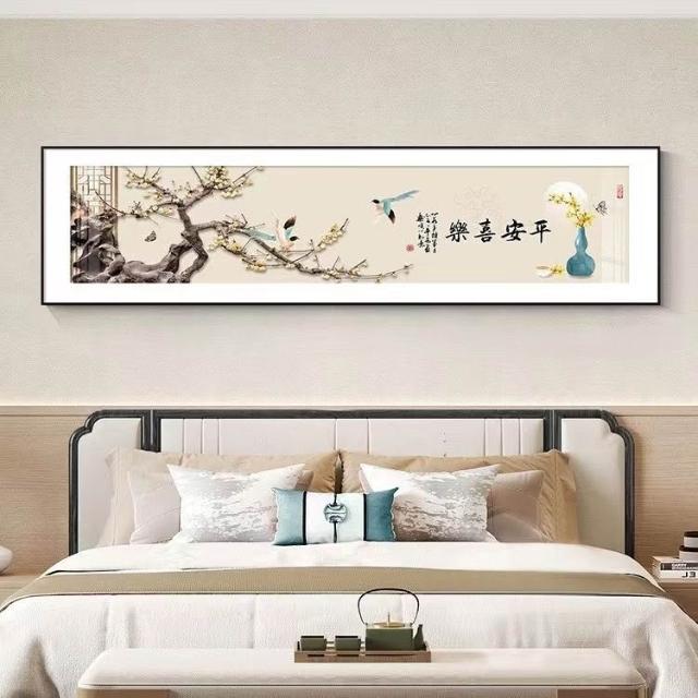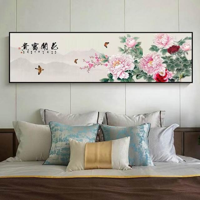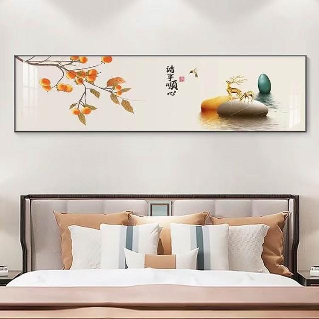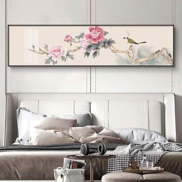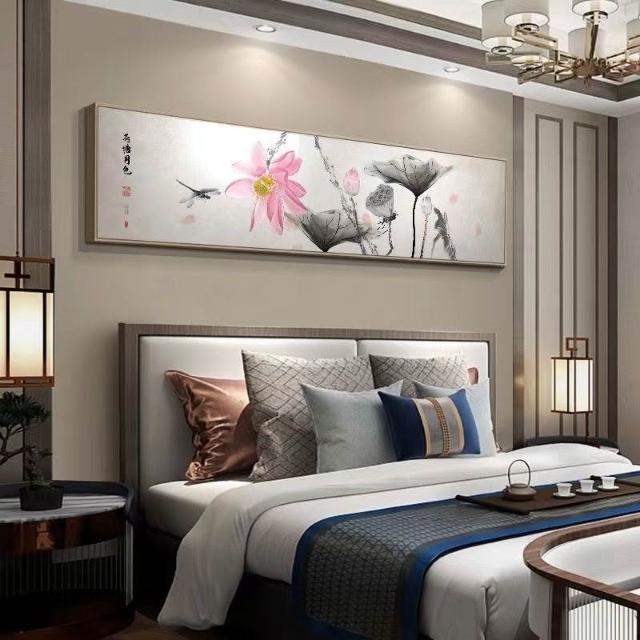 新中式卧室装饰画轻奢酒店房间墙面壁画国风客厅字画横版床头挂画