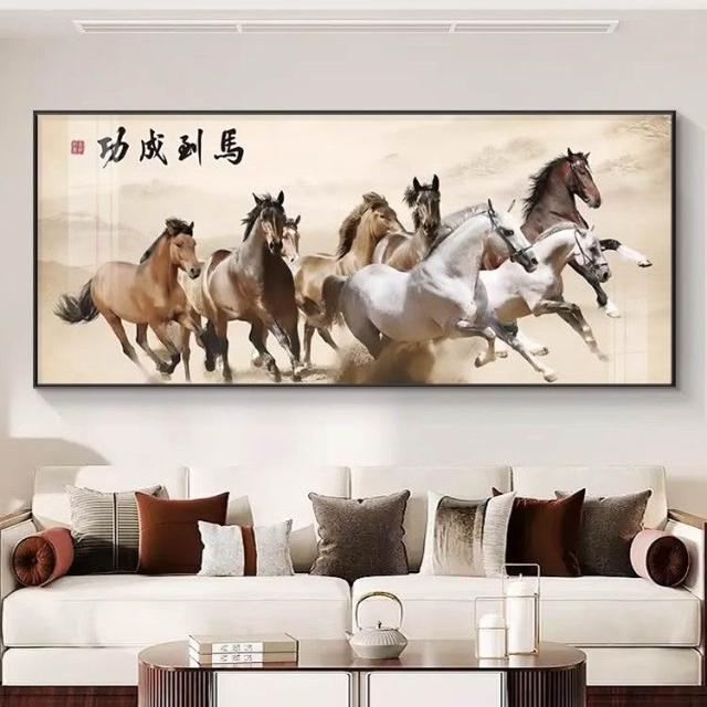 (客製) 八駿圖 馬到成功 裝飾畫 壁畫 風水畫鋁閤框 晶瓷畫 掛畫 酒店 辦公室 客廳掛畫 牆壁裝飾 開幕送禮