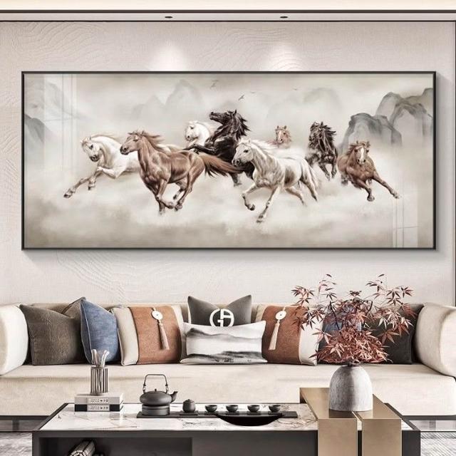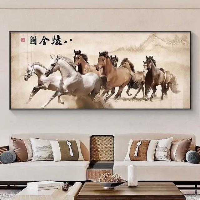 (客製) 八駿圖 馬到成功 裝飾畫 壁畫 風水畫鋁閤框 晶瓷畫 掛畫 酒店 辦公室 客廳掛畫 牆壁裝飾 開幕送禮
