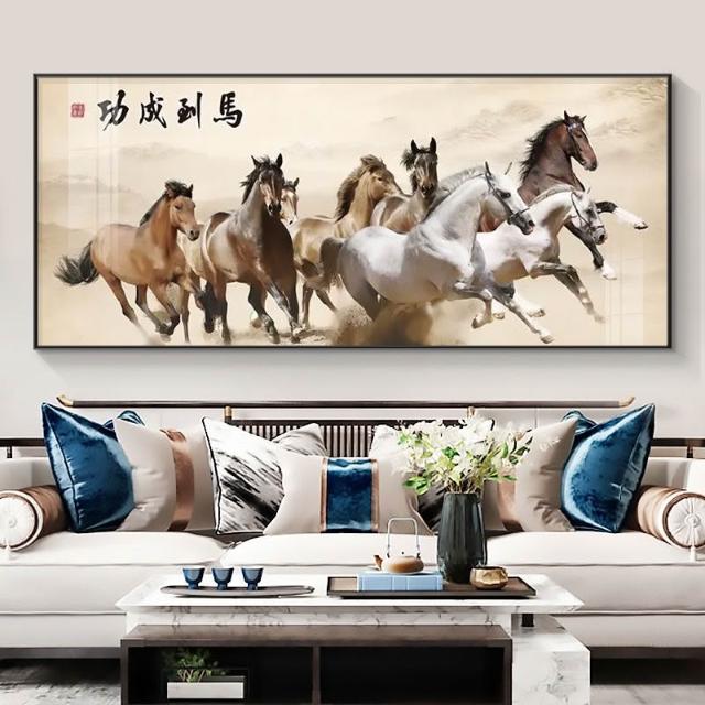 (客製) 八駿圖 馬到成功 裝飾畫 壁畫 風水畫鋁閤框 晶瓷畫 掛畫 酒店 辦公室 客廳掛畫 牆壁裝飾 開幕送禮