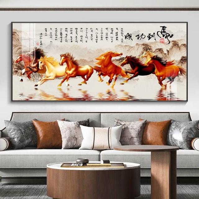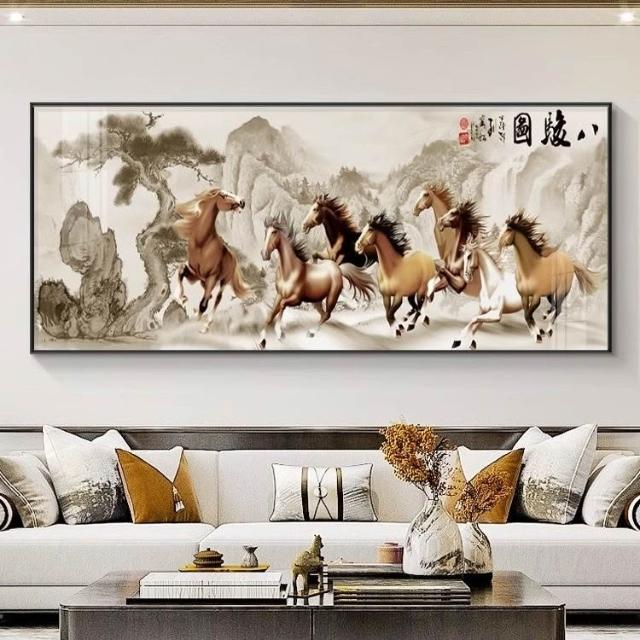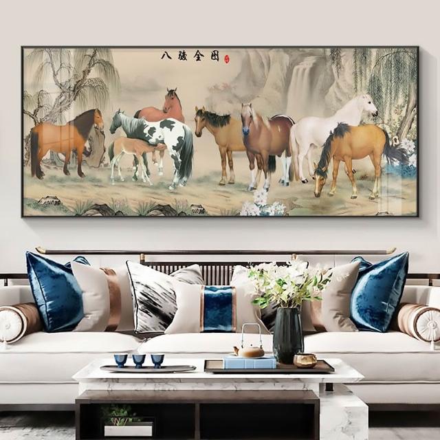 (客製) 八駿圖 馬到成功 裝飾畫 壁畫 風水畫鋁閤框 晶瓷畫 掛畫 酒店 辦公室 客廳掛畫 牆壁裝飾 開幕送禮